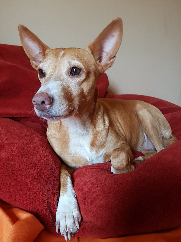 "Hello – it’s me!" Ein absolut passender Song für unser kleines Fledermausohr Adele, das eines Tages einfach freundlich wedelnd und charmant lächelnd vor der Tür eines Tierschützers der ArcoNatura stand. Die überaus zutrauliche Hündin rutschte auf dem Bauch in die Arme ihres Retters, der natürlich gar nicht anders konnte, als sie erst einmal in seine Wohnung zu holen, zu füttern und liebzuhaben und dann ins Tierheim unserer Freunde zu bringen. Nach ein paar Jahren dort kam Ende 2019 endlich Bewegung in Adeles Leben und sie durfte in eine Pflegestelle nach Deutschland ziehen. Adele hat ihren Namen nicht von ungefähr, und es ist nicht nur ihr unerwartetes Auftreten gewesen. Für eine Podenca ist das niedliche Mädchen nämlich ziemlich kräftig um die Mitte rum, aber das ist mit einem eigenen Quietscheball und spannenden langen Spaziergängen mit der eigenen Familie sicher bald Geschichte und die Pfunde unserer kleinen Pummelfee purzeln bereits jetzt schon ganz ordentlich. Adele ist ein extrem ausgeglichenes Wesen, sie beeindruckt durch ihre ruhige und zärtliche Art, mit der sie jeden Zweibeiner gekonnt um die Pfoten wickelt. Mit ihren ca. siebeneinhalb Jahren hat die lustige Hundedame alle Klippen des Welpen- und Junghundalters natürlich schon mehr als erfolgreich umschifft, sie ist welterfahren, aufgeschlossen und zeigt sich sehr aufmerksam, wenn es darum geht, neue Dinge kennenzulernen und zu begreifen. Gemeinsam mit dem vorhandenen Rüden bleibt sie schon prima stundenweise alleine und auch das Autofahren ist ein alter Hut für unser kleines Cleverle. Dabei ist Adele keineswegs ein alter Hund: Sie ist bei ausgiebigen Gassirunden voller Neugierde mit dabei- vor allem die wundervollen Gerüche haben es unserer Spürnase angetan und sie wird wegen ihres rassetypisch ausgeprägten Jagdtriebes sicherheitshalber an der langen Leine bleiben müssen. Katzen fallen eindeutig in das Beuteschema unserer hübschen Fledermaus, weshalb in ihrem neuen Zuhause besser keine Stubentiger leben sollten. Die Meerschweinchen in ihrer Pflegefamilie hat sie mittlerweile als Familienmitglieder akzeptiert. Voller Begeisterung reagiert unser rundliches Karamellbonbon jedoch beim Kontakt mit Kindern. Adele scheint hier ausschließlich gute Erfahrungen gemacht zu haben und freut sich so sicht- und hörbar über die Dreikäsehochs, dass man meinen könnte, sie habe ihr Berufung in der Betreuung der Kleinsten gefunden. Auch wenn Adele momentan noch nicht wie eine geborene Sportskanone aussieht, bleibt sie trotzdem ein Laufhund, und wir sind uns ziemlich sicher, dass die etwas pummelige Prinzessin sich bald noch viel eleganter bewegen können wird, wenn sie auch in Zukunft in einem aktiven Umfeld lebt. Adele ist ein echter Schatz mit ausgesprochen ausgeprägten Kuschelqualitäten, einem oskarreifen Grinsen, einem großen Herzen mit genug Platz für eine ganze Großfamilie und mit der großen Hoffnung auf eine glückliche Zukunft in einem richtigen Zuhause!