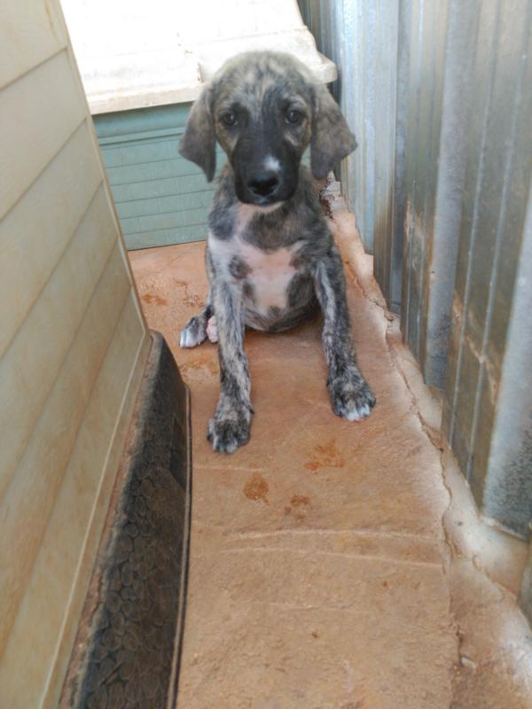 Im August diesen Jahres wurde die Polizei von Huelva zu einem verlassenen Feld gerufen, auf dem ein Spaziergänger 3 Welpen entdeckt hatte, mutterseelenalleine, ohne Wasser und Futter und vor allem ohne ihre Mama. Die Kleinen waren in einem sehr schlechten Zustand, voller Flöhe, Zecken und Milben und hätten ohne menschliches Zutun sicherlich nicht mehr lange überlebt. Zum Glück bewiesen die Beamten in diesem Fall so etwas wie Menschlichkeit und riefen nicht die staatlichen Hundefänger sondern die Mitarbeiter des Tierheimes an, die sich natürlich sofort der kleinen Hundekinder annahmen. Leider war einer der Welpen bereits so schwach, dass er in der Tierklinik verstarb, doch die anderen beiden, unsere Neuzugänge Diana und ihr Bruder Akira, kämpften tapfer um ihr Leben- und gingen als Sieger über Krankheit und Hunger hervor.Die beiden niedlichen Mäuse leben nun in der Obhut des Tierheimes von Huelva und haben sich sehr schnell daran gewöhnt, regelmäßige Mahlzeiten, Bauchmassagen und fröhliche Spielrunden zu genießen. Noch sind die beiden zierlich, schlaksig und klein- doch dies wird sich aller Voraussicht nach bald ändern. Da es sich bei Diana und Akira um Mastin- Mischlinge handelt, gehen wir davon aus, dass die Endgröße unserer beiden Knutschkugeln das Handtaschenformat bei weitem übersteigen wird (außer natürlich, Sie tragen ein Ein- Mann- Zelt als Handtasche mit sich herum). Typisch für die eher gemütlichen Herdenschutzhunde sind die beiden wunderschönen, gestromten Geschwister verhältnismäßig ruhige Welpen. Natürlich wird gespielt, getobt und mit den anderen Welpen gebalgt, jedoch nehmen sich Diana und Akira auch öfter mal eine Auszeit, um ein kleines Nickerchen zu machen oder die Umgebung wachsam im Auge zu behalten. Diese Wachsamkeit werden sie sicherlich bis zum Erwachsenenalter perfektionieren und wir bitten Sie, sich genau über diese Rasse und die allgemeinen Eigenschaften eines Herdenschutzhundes zu informieren, bevor Sie sich entschließen, einem unserer genialen Tollpatsche ein Zuhause zu geben.Diana und Akira werden mit Sicherheit ganz, ganz tolle Hunde- wenn man bereit ist, sie ihren Bedürfnissen entsprechend zu fördern und zu fordern. Sie haben eine große Couch und sind bereit, diese ganz und gar aufzugeben und abends beim Fernsehen auf dem Boden zu sitzen? Früh aufzustehen fällt Ihnen schwer und Sie wären dankbar über einen Wecker, der Sie wirklich aus dem Bett bekommt? Sie freuen sich, einem großformatigen Kumpel die Welt zu zeigen und mit einer treuen Hundeseele durch dick und dünn zu gehen? Dann könnten Sie genau die richtigen Menschen für unsere Großpfoten sein und sollten sich schnell mit der zuständigen Vermittlerin in Verbindung setzen!
