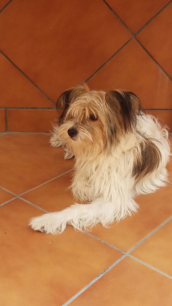 In Sevilla sind die Kapazitäten unserer andalusischen Freunde komplett ausgeschöpft, aber natürlich gibt es im Leben jedes Tierschützers auch immer diese Situationen, in denen man keine Wahl hat – und da ist es völlig egal, ob Geld oder Essen, Zeit oder Platz vorhanden ist, da muss man einfach helfen.Alma ist so ein Fall. Sie lief vollkommen hilflos durch die Straßen, sichtbar verwirrt, dehydriert und auf der Suche nach Hilfe. Eine der Mitarbeiterinnen der ARCA versuchte, die kleine Wuscheldame anzulocken, doch Alma hatte panische Angst. Also stellte die Tierschützerin erst einmal Futter und Wasser in sichere Entfernung und sorgte dafür, dass die maximal sechs Monate alte (Stand 08/2015) Junghündin in ihrem Tempo Kontakt aufnehmen konnte. Wie so oft war es dann ein Kind, das den Knoten platzen ließ. Ein kleines Mädchen schaffte es, Alma zu streicheln und ins Haus zu bringen.