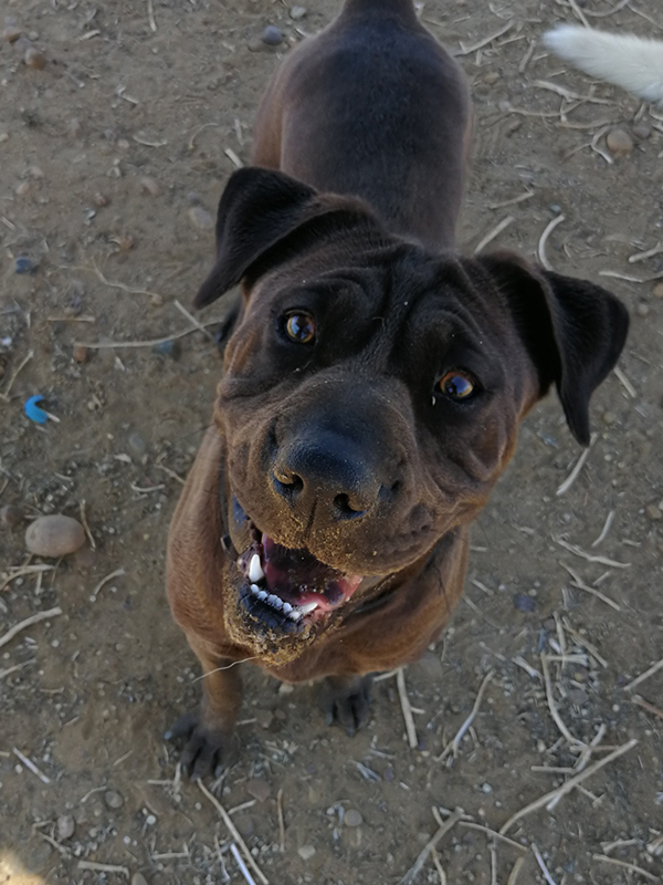 Amber hatte das Pech, bei (hier können Sie jetzt das Schimpfwort Ihrer Wahl einfügen, weil ich nicht tippen möchte, was ich denke) zu landen. Ihre Menschen nahmen im August 2017 die damals gerade wenige Wochen alte Fellkugel zu sich, nachdem sie vorher schon einen 11 Jahre alten Hund auf die Straße gesetzt hatten, weil er nicht mehr so gesund und ansehnlich war. Nun ist Amber ein Jahr alt (Stand 07/2018) und sie ist wohl auch nicht so, wie sich dieser menschliche Abschaum seinen Vierbeiner vorgestellt hat. Nachbarn informierten die Arca Sevilla, dass auch Amber ausgesetzt werden sollte, falls sie niemand aufnimmt – und so landete das bildhübsche Kraftpaket in der Obhut unserer Partner.Amber hat bezaubernde Falten, die wohl der sehr gelungenen Mischung von Boxer und Shar Pei geschuldet sind, und sie zeigt auch durchaus andere Merkmale dieser beiden Rassen. Souverän, verschmust, clever und immer zu Streichen aufgelegt, erobert Amber die Herzen der Tierschützer im Sturm. Obwohl der Shar Pei sonst nicht besonders verspielt mit anderen Hunden interagiert, scheinen bei Amber eher die Boxergene zu tragen. Sie misst gern ihre Kräfte mit Gleichaltrigen in den Disziplinen Ringen, Wettlauf und Hochsprung, wobei sie in zwei von drei Wettkämpfen immer gegen unsere Podencos und Galgos verliert, aber damit gut leben kann…Amber braucht eine Familie, die bereit ist, ihr all das zu erklären, was ihre Vorbesitzer versäumt haben. Sie ist mit 54cm Schulterhöhe kein kleiner Hund, sie hat Kraft und viel Energie und möchte geführt werden. Hundeerfahrung, oder zumindest die Bereitschaft, mit ihr eine gute Hundeschule zu besuchen, wäre absolut von Vorteil. Amber ist extrem liebenswert, aber sie unterschätzt, wie die meisten Kuscheltiere ihrer Größe und Alters, noch ein wenig ihre Fähigkeiten und ihre Muskeln.