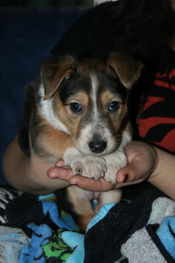 Arya ist ein im Moment etwa acht Wochen altes (Stand 03/2015) Bündel Lebensfreude und Knuddeligkeit. Die süße Knutschkugel erobert mit ihrem genialen Tricolor-Outfit, den riesigen dunklen Augen, den lustigen Überfallohren und ihren tapsigen Pfoten, die ihrer Pflegemama auf Schritt und Tritt folgen, in Windeseile alle Herzen der zwei- und vierbeinigen Bewohner ihres vorübergehenden Heims. Neugierig und anhänglich nimmt Arya alles in Beschlag, freut sich über neue Freunde, turnt und hüpft mit Begeisterung und kuschelt sich mit Vorliebe in den Schoß eines Zweibeiners, um (wenig damenhaft) schnarchend ein kleines Nickerchen einzulegen. Natürlich nimmt sich Arya im Moment noch viele kleine Auszeiten vom großen Abenteuer Leben, denn die hübsche junge Dame will ja noch wachsen. Wieviel sie noch wachsen will? Tja, das ist die große Frage, und wir können im Prinzip nur sagen, dass auch Arya zu unseren Überraschungseiern gehört, man weiß vorher nie so genau, was drinnen steckt – da hilft auch Schütteln selten wirklich…