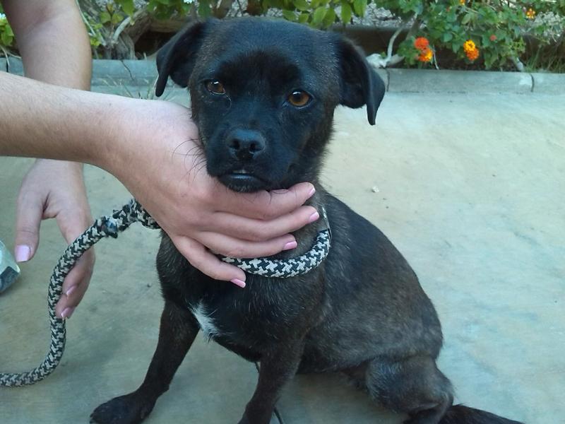 eBecky wurde vor der Tür des Tierheims in Sevilla angebunden. Wahrscheinlich dachten ihre Ex-Besitzer, sie hätten damit ihrer Verantwortung Genüge getan – was sie nicht bedachten, war, dass in südeuropäischen Tierheimen zu 99% Freiwillige arbeiten und oft stundenlang niemand in der Einrichtung ist. Becky wartete stundenlang in der sengenden Hitze ohne Schatten und ohne Wasser auf Hilfe, bis endlich ein ehrenamtlicher Mitarbeiter eintraf und die völlig entkräftete und dehydrierte Hündin fand. Das erst einjährige Mädchen ist zum Glück gesund und erholte sich in kürzester Zeit. Becky, die mit ihrem lustigen Unterbiss immer ein wenig zu grinsen scheint, ist ein extrem liebenswertes Wesen, das sich über jede Aufmerksamkeit freut. Die kleine Hündin mit der außergewöhnlichen Fellfarbe (sie scheint schwarz, aber im Sonnenlicht sieht man ihre wundervolle Stromung) spielt mit Hingabe, liebt Bälle und ist sehr menschenbezogen. Kuscheln und Knuddeln ist für die kleine Portion Hund das schönste Hobby und wir können uns jetzt schon bildhaft vorstellen, wie sich die hübsche Handtaschenausgabe zwischen ihre neue Familie auf der Couch schleicht und sich den Bauch streicheln lässt, während sie in völliger Geborgenheit und zufrieden einschläft. Becky ist ein wundervoller Hund für alle und jeden, auch hundeunerfahrene Menschen können mit der kleinen Lady nicht viel falsch machen. Sicherlich braucht das Paket Lebensfreude Erziehung und Führung, wie jeder andere Hund auch, aber für ihr Alter ist Becky schon sehr ausgeglichen, zärtlich und folgt und gefällt gerne. Wer hat ein Kuschelkörbchen für Becky frei und möchte der niedlichen Prinzessin ein Heim geben, aus dem sie nie wieder abgeschoben wird wie ein nicht mehr benötigtes Möbelstück?