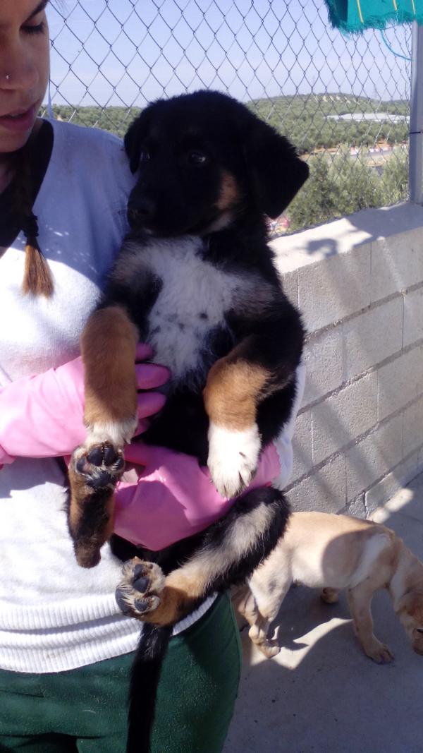 Andrea und Belen sind zwei zuckersüße, gerade drei Monate alte (Stand 07/2015) Schäferhund-Mischlinge. Sie wurden von Kindern in einem glühend heißen Müllcontainer gefunden, und nur dem schnellen Handeln der Nachwuchstierschützer ist es zu verdanken, dass die beiden niedlichen Babys noch leben. Wie normal es in Südeuropa ist, ungewollte Welpen einfach lebend in den Müll zu werfen, zeigt die Tatsache, dass am 17.06.2015, Andreas und Belens Fundtag, noch ein anderes Hunde-Geschwisterpaar von Kindern aus dem Müll gezogen und in die ArcoNatura gebracht wurde. Manchmal bleibt nur noch Kopfschütteln angesichts der Grausamkeit der Menschen…Andrea, das kleine Mädchen mit der zart weiß getünchten Nase und dem schneeweißen Brustlatz, und ihre im Gesicht etwas dunklere Schwester Belen, deren herrliche Tricolor-Beine mit den dicken Pfötchen schon fast an einen Berner Sennenhund erinnern, sind fröhliche Babyhunde, die am liebsten den ganzen Tag die Freiwilligen der ArcoNatura bespaßen und bekuscheln würden. Leider ist dafür momentan überhaupt keine Zeit, oder besser gesagt, es ist noch viel weniger Zeit als sonst eh schon, denn über unsere andalusischen Partner fegt eine regelrechte Welpenflut hinweg, ein Beweis dafür, dass die jahrelange Arbeit für die Sensibilisierung der Bevölkerung zu den Themen Kastration und Müllpolitik noch lange nicht beendet ist. Auch hierfür brauchen unsere Freunde dringend Ihre Unterstützung!Andrea und Belen suchen aktive und geduldige Familien, die sich darüber bewusst sind, dass die beiden Grazien noch viel lernen und verstehen müssen. Die Tatsache, dass unsere Mädels einmal eine stattliche Größe erreichen könnten, sollte auch durchaus eine Rolle spielen, wenn Sie sich überlegen, einer unserer Prinzessinnen ein Heim zu schenken. Auto, Körbchen und körperliche Fähigkeiten des Leinenführers sollten schon ein wenig dem Hund entsprechen, den man sich ins Haus holt. Ist das alles bedacht und sind Sie sich darüber im Klaren, dass ein Welpe immer viel Zeit und Humor erfordert, steht einem Einzug einer der (oder beider) Noch-Mini-Schönheiten nichts im Weg. Andrea und Belen sind für alle denkbaren Karrieren offen und wollen einfach nur endlich zu einer richtigen Familie gehören.