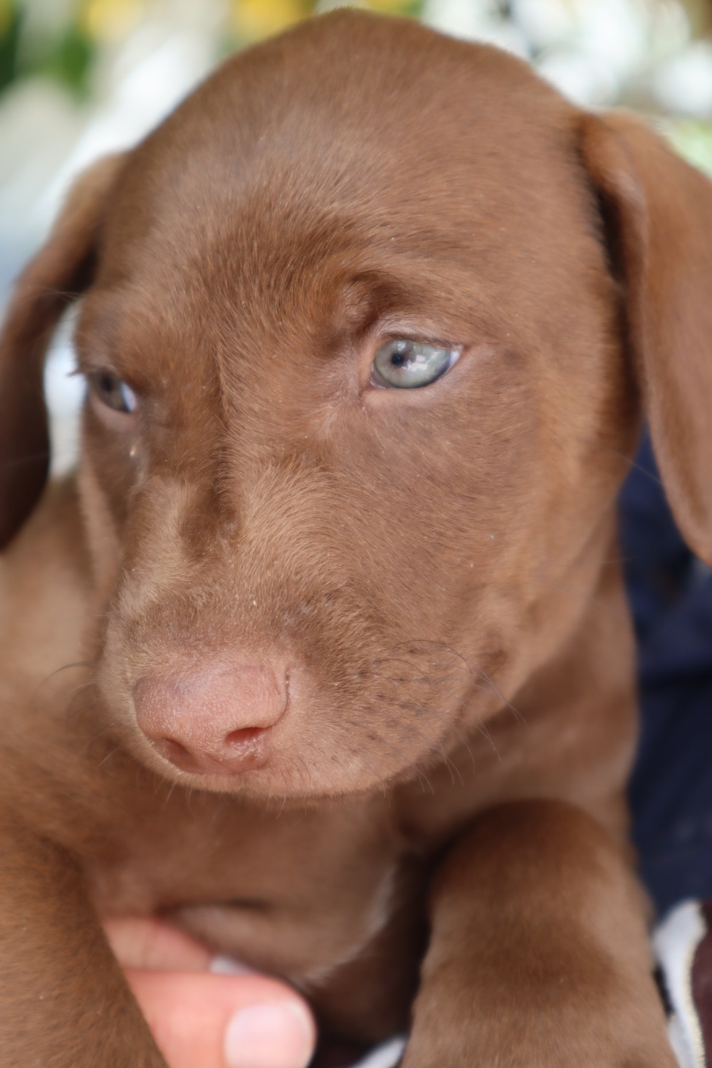 Die fünf Wonneproppen, die sich um ihre liebevolle Mama scharen, erinnern in Form und Größe an kleine Labradore und auch die Farbe könnte entweder auf einen der seltenen silbernen Labradore oder einen Weimaraner hinweisen. Auch die äußerst faszinierenden Augen der Kleinen lassen vorsichtige Schlüsse zu, dass einer der hübschen Jagdhunde seine Pfoten bei der Entstehung dieses wirklich außergewöhnlichen schönen Wurfs hatte.