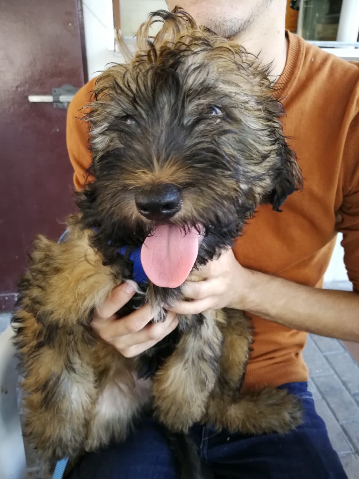 Bono hat in seinem jungen Leben bereits einiges hinter sich. Seine Mama Cher lebte auf dem Land, angebunden an ein kurzes Seil vor einem Bauernhof. Sie hatte weder Unterstand noch Zugang zu Wasser, saß in ihren eigenen Fäkalien, und dort brachte sie auch im Mai dieses Jahres ihren Sohn Bono auf die Welt. Bei einem Spaziergang entdeckten Tierschützer das Pärchen, die entkräftete Mama mit ihrem unter diesen Umständen vermutlich dem Tod geweihten Fellbündelchen am Bauch, und sie sprachen mit dem Besitzer, um Cher und Bono zu retten. Der ziemlich aggressive Mann war uneinsichtig, aber bereit, zumindest den Welpen abzugeben, den er sowieso nur behalten hatte (wir wissen nicht, ob noch andere Babys im Wurf waren, die er – wie leider meist üblich – getötet hat), damit seine Hündin keine Mastitis entwickelte. Bono war gerade fünf Wochen alt, und er brauchte seine Mama noch, aber ganz davon abgesehen, wollten unsere Freunde auch nicht, dass Cher nun jedes Jahr wirft, ihre Babys verliert, selbst nie das Leben außerhalb ihres 1m-Radius‘ kennenlernt und weiterhin in ihren eigenen Ausscheidungen sitzen muss, während ihr Fell vermattet und sie nur darauf warten kann, ob jemand sie irgendwann füttert. Leider greift das Tierschutzgesetz in solchen Fällen in Spanien nur sehr schlecht und in solchen Situationen zeigen dann unsere Freunde vor Ort auch oft genug Eigenverantwortung, die vielleicht nicht ganz dem Gesetz (aber doch jeder Ethik und Gerechtigkeit) entspricht. Also nahm man Bono entgegen, wartete kurz ab, und befreite auch Cher… Das Interesse des Bauers zeigt sich deutlich darin, dass er bislang nicht mit der Wimper gezuckt hat oder nach seinem "Eigentum" gefragt hat, obwohl ja klar ist, wo sich Bono aufhält. Nun, für unsere beiden Lockenköpfchen gilt: Ende gut, alles gut… oder ist es nicht eigentlich erst der Anfang, den die hübschen Vierbeiner gerade erleben? Cher und Bono wohnen jetzt bei einer liebevollen Pflegefamilie, sie haben die Couch erobert, bekommen das erste Mal in ihrem Leben regelmäßige Mahlzeiten und beide finden das Leben im Haus einfach nur toll.Bono ist ca. acht Wochen alt – er hat schon lange vergessen, wie traurig sein Leben begonnen hat, und nun widmet er sich einfach dem Projekt "Wachsen – Lernen – Kekse betteln". Recht hat er, denn die Gedanken und Sorgen eines kleinen Hundekindes sollten um nichts anderes kreisen. Außerdem ist Bono bereits in verschiedenen Disziplinen des Welpensports sehr erfolgreich.Meisterhaft wackelt er mit seinem dicken Popo, lässt die Locken fliegen und ringt mit seinem Spielzeug. Natürlich brilliert er auch, wenn es darum geht, den anderen Hunden in seiner Pflegefamilie den einen oder anderen Streich zu spielen, doch anscheinend sind auch diese nicht immun gegen Bonos Unschuldsblick- böse kann ihm jedenfalls niemand sein. Wir wünschen uns für unseren Lockenzwerg nun eine aktive und unbedingt humorvolle Familie (die wichtigste Charaktereigenschaft jedes Welpenhalters), die bereit ist für eine Riesenportion Spaß und Action im Haus. Bono hat sich bereits entschieden, Ihr Herz zu klauen- Widerspruch ist also zwecklos!