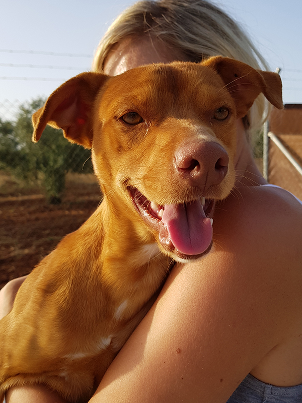 Brandon kann nicht verleugnen, dass in seiner Ahnenreihe ein Podenco eine nicht ganz unwichtige Rolle gespielt haben muss. Seine knallrote Nase und sein leuchtendes Fell sind eindeutige Hinweise, allerdings hat unser extrem liebevoller und zärtlicher Einjähriger (Stand 05/2017) auch bezaubernde Stirnfalten und breite Schultern – was immer wieder zu lustigen Ratespielen führt, was sich noch alles in dem Herzensbrecher verbirgt. Da spanische Straßenhunde aber meist Nachkommen von Mischlingen aus Mischlingen sind, wird es wohl beim Raten bleiben, und Brandon wird sein Leben lang immer eine "Ausrede" haben, warum eine kleine Dummheit unvermeidlich war, denn er ist ja schließlich ein "XY"…Brandon wohnt in Huelva in der Tierpension, nachdem er lange Monate in der Preperrera auf einen freien Platz warten musste. Er genießt sein neues Leben in vollen Zügen und wir freuen uns jetzt schon darauf zu sehen, was aus Brandon wird, wenn er erst einmal in einem richtigen Zuhause toben und spielen wird. Brandon lernt in der Tierpension schon viele Dinge, von denen einige Hunde, die im Tierheim leben, bisher nur träumen können. Er hat zum Beispiel seine Liebe zu Spaziergängen entdeckt, und das, obwohl diese wirklich selten möglich sind. Doch Brandon ist so ein heller Kopf, dass er sich mittlerweile schon ausgelassen freut, wenn er nur sieht, dass jemand mit Leine zu ihm kommt. Wenn Brandon nicht mit einem Helfer Huelva erkundet, spielt er gerne mit seinen Artgenossen. Am liebsten aber kuschelt er mit den Zweibeinern, die ihn erst von der Straße und dann aus dem einsamen Zwinger gerettet haben, er sucht immer die Nähe seiner Bezugspersonen und freut sich auch über Besuch in der Einrichtung.Im Großen und Ganzen kann man also festhalten, dass Brandon ein extrem fröhliches Kuschelkissen mit sportlichen Ambitionen ist, und eine Familie sucht, die ebenso viele Facetten liebt, um ein wunderbares Leben mit dem feuerroten Spielmobil zu beginnen.Nun, wir drücken alle Daumen, dass Brandon bald sein Ticket ins Glück buchen kann!