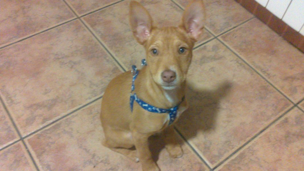 Das ist Canelo. Er ist ein kleiner Podenco, knallrot und mit den typischen, wunderschönen, grünen Augen — was ihn NULL interessiert. Er ist obergoldig und wirkt auf alle Menschen in seiner Umgebung umwerfend. Die Zweibeiner reagieren unkontrolliert mit Begeisterungsausbrüchen, dem Wunsch, ihm sofort einen Keks und einen Kuss zu geben, einen Ball zu werfen oder, sobald der Kleine nur ansatzweise liegt, ihm stundenlang den Bauch zu kraulen — DAS wiederum weiß Canelo und findet es klasse. Das fröhliche Hundebaby, das im Alter von wenigen Wochen im Tierheim abgegeben wurde, hat sich inzwischen zu einem ebenso fröhlichen Junghund entwickelt, der bei seiner Pflegefamilie für stete Unterhaltung sorgt und sich akribisch auf sein zukünftiges Leben als bester Freund seiner zukünftigen Dosenöffner vorbereitet. Seine Hauptfächer sind Spielen, Toben, Kinderbespaßung und Sportanimation, aber auch in den Nebenfächern Kuscheln, Betteln, Herzensbrecherblick, straffreies Klauen und vor allem im Gute-Laune-Verbreiten zeigen sich Canelos ausgeprägte Talente. Canelo wünscht sich eine aktive Familie, am besten mit Mitgliedern in allen Größen und Formen, mit viel Action und Spaß. Unser Clown wird mit einer Extraportion an ansteckender Lebensfreude und der Garantie ausgeliefert, dass Langeweile und Antriebslosigkeit keine Chance mehr haben werden.
