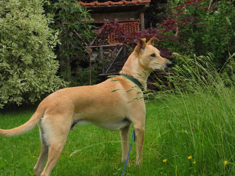 Chico kam im Mai 2014 nach Deutschland, da er von einer netten Familie adoptiert wurde. Obwohl er in Spanien keine Anzeichen beim Katzentest zeigte, die auf eine Unverträglichkeit hingewiesen hätten, mussten wir feststellen, dass Chico in seinem neuen Zuhause mit der dort lebenden Katze nicht gut auskommt und diese jagt. Das muss nicht unbedingt an Katzen allgemein liegen – es kann auch sein, dass eben DIESER HUND und DIESE KATZE nicht miteinander auskommen. Das kommt ja auch bei uns Menschen öfter mal vor. Manche kann man einfach nicht riechen. Da das aber für alle Beteiligten eine wirklich angespannte Situation ist müssen wir Chico schleunigst in einer Pflegestelle "möglichst ohne Katzen" unterbringen.
