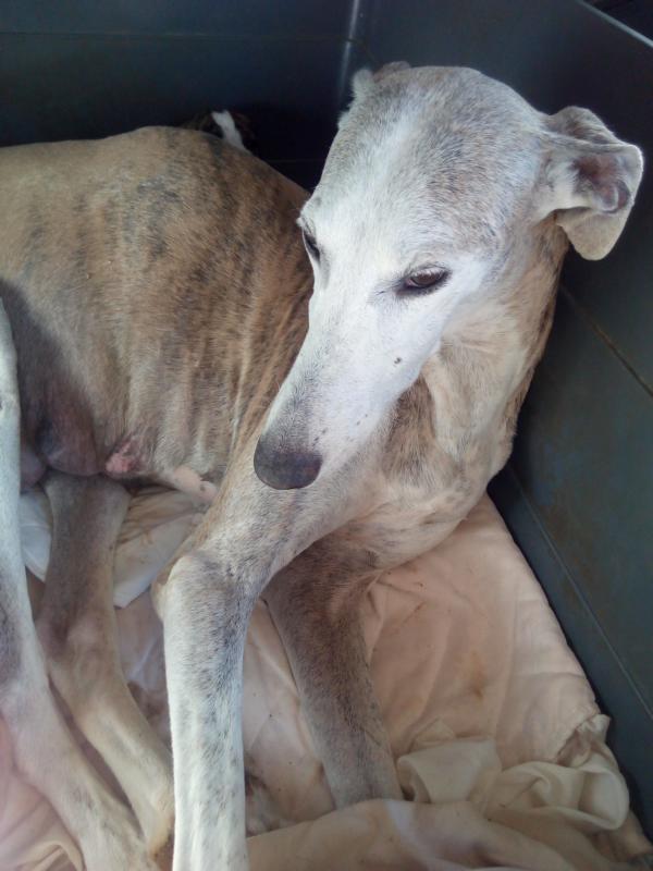 Wir freuen uns immer wieder, wenn wir hören, dass Menschen in Spanien sich der allgegenwärtigen Straßenhunde annehmen, sie nicht vertreiben, sie sogar füttern oder auf einem sicheren Grundstück dulden, doch leider ist den Hunden und dem Tierschutz dadurch nur zum Teil geholfen, denn Tiere, die gesicherten Zugang zu Nahrung, Unterschlupf und ein Rudel haben, vermehren sich nun einmal unkontrolliert. Daran dachte ein Besitzer einer Finca in Huelva wohl auch nicht als erstes, als er Chispi auf seinem Gelände unterkommen ließ, trotz seiner schon vorhandenen, nicht kastrierten Rüden, und schnell sah man, dass Chispi nicht mehr lange allein unter Herren sein würde. Als dann drei entzückende Welpen das Licht der Welt erblickten, informierte der inzwischen doch etwas besorgte Mann die Tierschützer von Dolmen Animal, die Mama und Kinder in ihre Obhut nahmen und sich jetzt darum bemühen, dass jede der vier hübschen Windhundnäschen eine gesicherte Zukunft in einem richtigen Zuhause bekommt.Chispi ist eine reinrassige Galga, zart und zärtlich im Wesen, rassetypisch zurückhaltend und unfassbar elegant. Da ihre Babys noch so klein sind und Chispi sie wie jede gute Mama gegenüber Fremden beschützt, erscheint sie momentan noch sehr schüchtern, unsere Freunde in Huelva konnten aber schon beobachten, wie Kinder aus der Nachbarschaft sich der kleinen Familie nähern konnten, Chispi mit Keksen füttern und die Babys streicheln durften. Deswegen gehen wir davon aus, dass unsere Prinzessin ein aufgeschlosseneres Wesen zeigen wird, wenn ihr Nachwuchs erst einmal etwas älter ist. Auf jeden Fall ist die liebevolle Mutter in keiner Weise schreckhaft oder hat generell Angst vor Menschen, sie sucht nur im Augenblick (noch) nicht aktiv Kontakt, kann aber Streicheleinheiten seitens ihr bekannter Pfleger schon genau so genießen, wie man es von Podencos und Galgos erwartet – nämlich mit weit von sich gestreckten langen Beinen, auf dem Rücken liegend und immer mehr an Zuneigung fordernd, wenn ihre inzwischen schon selbständig spielenden Fellkügelchen beschäftigt sind.Wenden wir uns mal diesen hübschen Wonneproppen zu. Magui, Ronda und ihr Brüderchen Coldo sind inzwischen fast zwei Monate alt (Stand 12/2016). Ihre knubbeligen Nasen und die tapsigen Pfötchen verraten noch nicht viel über ihre 50%-igen Windhundgene, aber zumindest die Farbe der drei Musketiere lässt darauf schon jetzt schließen. Sicher werden aber in den nächsten Wochen die Beine des Trios länger, die Nasen schmaler und vor allem wird sich ihr Bewegungsdrang verzehnfachen, wenn sie feststellen, wie schnell man mit der naturgegebenen Ausrüstung flitzen kann. Wir wissen nicht genau, welche Gene sich in der anderen Hälfte des Erbguts unseres Dreigestirns verbirgt, ihre mutmaßlichen Papas sind durch die Bank Mischlinge, was Magui, Ronda und Coldo zu echten Überraschungseiern macht. Da wir aber zumindest wissen, dass weder Dackel noch Chihuahuas eine Rolle bei der Zeugung der lustigen Bande eine Rolle spielten, liegt die Vermutung nahe, dass die niedlichen Fellknubbel in einem Jahr zwischen 50 und 60cm hoch sein und alle Laufwettkämpfe in ihrer Nachbarschaft dominieren werden.Wenn Sie Chispi, unserer bescheidenen hübschen und eleganten Prinzessin oder einem ihrer Babys ein Zuhause schenken wollen, setzen Sie sich bitte mit uns in Verbindung. Wir würden uns freuen, wenn die wundervolle Familie bald schon aus dem Zwinger des Tierheims ausziehen und in den Transport in Richtung großes Glück einsteigen könnte!