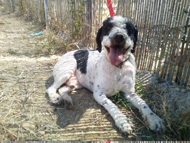 Ein extrem sympathischer, junger Mann mit wundervollen Locken und glänzenden Augen sucht Familienanschluss. Clooney – so haben ihn (vermutlich weibliche) Tierschützer in Sevilla genannt – war einer dieser Hunde, die nie von der Straße gerettet werden mussten, nein, man musste ihm nur eine Mitfahrgelegenheit anbieten und schon war er auf dem Beifahrersitz unterwegs in Richtung neues Leben.Clooney war in der Innenstadt Sevillas schon bekannt wie – nun, tja, wie ein bunter Hund eben, und das ist er auch. Der extrem menschenfreundliche Wasserhund-Mix suchte ständig Aufmerksamkeit, Streicheleinheiten und wusste genau, welche Register er ziehen musste, um bei Straßenhändlern, in Cafés und nicht zuletzt von Touristen ein Leckerchen zu erbetteln. Aber leider sind nicht alle Menschen in Andalusien den Streunern wohlgesonnen, und so ist es gut, dass unser Fotomodell mit den lustigen Punkten im Fell nun in Sicherheit vor Giftködern, Tierquälern und Hundefängern ist. In der Arca zeigt sich unser fast zweijähriger (Stand 06/2017) Neuzugang als äußerst verspielter, intelligenter Gentleman, der sich mit den anderen Hunden blendend versteht, sich über Besuch freut, Kinder liebt und nur darauf wartet, endlich Fans zu finden, die ihm einen eigenen Ball schenken wollen – und natürlich ein bequemes Plätzchen auf der Couch, einen Fensterplatz im Auto und nicht zuletzt ganz viel Liebe, Geduld und Humor entgegenbringen möchten.Clooney zeigt viele rassetypische Eigenschaften des Perro de Agua, und das bedeutet in erster Linie, dass er kein Couchpotato sein will. Wasserhunde sind schlaue, menschenbezogene Arbeitshunde, die beschäftigt und ausgelastet werden müssen. Wenn Sie also Interesse an einem cleveren, sportlichen, absolut verkuschelten, kinderlieben, keksbesessenen Lockenköpfchen haben, das Ihnen jeden Tag aufs Neue ein Lächeln ins Gesicht zaubern wird, sei Ihnen gesagt, dass mit Clooney genau der richtige Hund auf Ihre Bewerbung wartet!