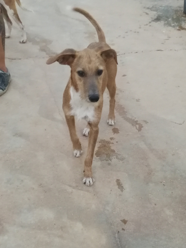 Eine wunderschöne, zärtliche, schokoladenbraune Mischung mit lustigen Sahnetupfern – so könnte man Linda äußerst passend beschreiben. Als die umgängliche und sehr soziale Hündin das erste Mal in den Radar der Tierschützer der Dolmen Animal kam, geschah das durch Anrufe von Bürgern, die das offensichtlich säugende Mädchen immer wieder auf einem Platz in der Stadtmitte sahen, wo sie nach Futter suchte. Natürlich konnte man Linda also nicht einfach einfangen, irgendwo warteten bestimmt Welpen auf die Rückkehr ihrer Mama. Auch die Tierschützer von Huelva haben neben ihrer Arbeit in der Tierpension noch ganz normale Berufe und so sprach man sich mit vielen Helfern ab, um Linda möglichst oft folgen zu können. Zum Glück zeigte sich die liebevolle Mutter nicht besonders scheu und führte ihre Retter schon wenige Tage später zu einem lustigen Haufen von sechs Welpen, die in der Nähe eines Altersheims versteckt waren, dort aber schon von Pflegern des Heims mitversorgt wurden. Entsprechend war das fröhliche Sextett auch richtig gut drauf und gesund. Zwei der fröhlichen Mischlinge fanden gleich Adoptanten in Spanien, vier superhübsche Rüden warten noch auf Menschen, die sich in sie verlieben.Linda ist eine ausgewogene und sehr überlegte Hündin, vor allem, wenn man bedenkt, dass auch sie erst maximal zweieinhalb Jahre alt ist, wobei sie mit der Mutterschaft ja auch viel Verantwortung tragen musste und sicher bald entdeckt, dass auch sie jetzt wieder einfach nur Hund sein darf. Linda verträgt sich bestens mit ihren Mitbewohnern im Zwinger und spielt gerne mit ihren neuen Freunden. Dankbar achtet sie sehr auf die Reaktionen der Zweibeiner und möchte immer gefallen, Linda hat einen sehr ausgeprägten Lernwillen und ist sehr weich in der Führung.