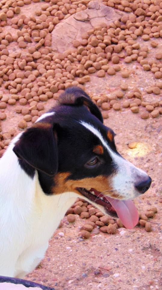 "Das ist doch ein Jack-Russell-Terrier, oder?" Diese Frage kennen Besitzer eines Bodegueros oder eines Mischlings dieser lustigen spanischen Terrierart sehr gut, und die Antwort nach dem: "Nein, es ist ein Bodeguero.", ist meist ein langes, durch breites Grinsen unterstütztes Loblied auf das Tier am Ende der Leine. Der Bodeguero ist langbeiniger als der Jack-Russell, aber das ist nicht der einzige, und vor allem nicht der entscheidende, Unterschied. Im Gegensatz zu den meist sehr unruhigen und bellfreudigen britischen Kollegen, gilt der Bodeguero als sehr ausgeglichen – und ist auch für Kinder meist der bessere Kamerad. Aber natürlich ist auch der Spanier ein typischer Terrier: freundlich, gelehrig, arbeitsfreudig, zuweilen etwas dickköpfig und enorm verspielt. Auch der Jagdtrieb der witzigen Gesellen ist oft nicht zu unterschätzen, immerhin wurden sie speziell als Rattenfänger gezüchtet.Cris ist eine wunderhübsche Vertreterin ihrer Rasse, sie ist ein Jahr alt und sie hat einen tollen neuen Freund gefunden. Außerhalb von Linares gibt es ein Industriegebiet. Die kleine Hündin versuchte dort zwischen Baumaschinen, LKW und übelgelaunten Zweibeinern irgendwie zu überleben, als ihr ein überaus netter Mann begegnete. Er teilte sein Pausenbrot, passte den Rest des Tages auf Cris auf und abends ließ er die fröhliche Terrierdame in sein Auto hüpfen. Voller Zuversicht fuhr er zur ArcoNatura, um seine neue Freundin in beste Hände zu übergeben – aber da im Mai (wo Cris pünktlich zu ihrem ersten Geburtstag gerettet wurde) das Tierheim zum Bersten voll ist von ausgesetzten Jagdhunden, konnte man das nette Hundemädchen nicht aufnehmen. Die Alternative wäre der öffentliche Zwinger gewesen, und alle Beteiligten hatten schwer zu schlucken – aber Cris‘ Retter nahm das nicht hin, sondern stattdessen Cris mit nach Hause. Der tierliebe Mann hat zwar keine Zeit für einen Hund, offiziell darf er auch keine Haustiere halten, aber er tut alles, um doch noch für ein Happy End für seine verspielte und extrem menschenfreundliche Prinzessin zu erreichen.So wohnt Cris jetzt also in einem kleinen Appartement, wo man sie nicht bemerken darf (und das schlaue Spielmobil hat das gut begriffen – kein Kläffen und Heulen, wenn sie lange allein sein muss), sie wartet geduldig auf die abendliche Rückkehr ihres Pflegepapas und freut sich schon darauf, dass (hoffentlich bald) eine Anfrage von Menschen für sie kommt, die ihr ein richtiges Zuhause schenken können, wo Platz und Zeit für einen aufgeweckten, aktiven und lernwilligen Teenager ist, der die Welt noch im Sturm erobern möchte!