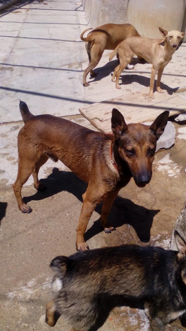 Curro lebte als Hund eines Gitanos, der sich für seinen Vierbeiner aber nicht mehr interessierte als für ein altes verrostetes Fahrrad. Verdrecktes Wasser, verschimmelte Essensreste und mehr als deutliche Spuren des verrottenden Seils, das um Curros Hals geschlungen war, all das beobachteten die Mitarbeiter der ArcoNatura immer wieder, wenn sie an Curros „Heim“ vorbeikamen, um die in der Nähe gelegene Katzenfutterstelle zu betreuen. Doch leider ist diese Art Haltung, so man das so nennen will, nicht gegen das spanische Tierschutzgesetz (und auch hier kriege ich mit der Formulierung persönliche Probleme) und der Besitzer war nicht bereit, den Hund abzugeben. Doch irgendwann wurde er wohl dem Genörgel überdrüssig und gab Curro an einen Bekannten weiter, und dieser kümmerte sich (man muss fast sagen zum Glück) noch weniger um den netten Rüden – so dass dieser sein Schicksal selbst in die Hand nahm und weglief. Als Curro über viele Umwege an der ArcoNatura ankam, wurde er natürlich sofort erkannt, freudig begrüßt und aufgenommen.