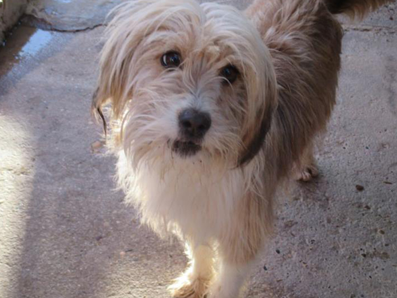 Wenn Dafne nicht gerade in der ArcoNatura sitzen würde, und es nicht Januar und zum Teil bitterkalt wäre, dann könnte man ihr eigentlich wirklich tolles Wuschelfell mal richtig schneiden, legen und fönen und Sie könnten noch besser sehen, was für ein einzigartiges und oberniedliches Tier sich unter der noch etwas wilden Hippiefrisur verbirgt. Aber das Frisieren muss noch ein wenig warten, denn Dafne braucht den Schutz vor Wind und Wetter. Also verbrachten und verbringen unsere Freunde in Andalusien auch Stunden damit, aus der verfilzten und schmutzigen Matte, mit der unser Neuzugang ankam, Ästchen zu klauben, Dornen zu entfernen, zu waschen, zu bürsten und zu desinfizieren, was ging und geht – und wir finden, dass sie schon ganz hervorragende Arbeit geleistet haben!Dafne wurde von einem tierfreundlichen Pärchen bei einem Spaziergang in der Nähe eines andalusischen Dorfes unweit von Linares entdeckt. Da den beiden sofort klar war, dass Dafne Schmerzen litt und Hunger hatte, lockten sie geduldig das schüchterne Mädchen mit Wurstbrot, bis sie ein behelfsmäßiges Halsband anlegen und das zitternde Bündel ins Auto legen konnten. Nach einer ersten Untersuchung war unsere Tierärztin Montse direkt in der Lage zu sagen, dass Dafne nichts fehlt, außer Liebe, Pflege, gutes Futter und ein sicheres Plätzchen zum Schlafen – also zog sie direkt in die ArcoNatura ein.Dafne ist ein ruhiges, liebes Wesen, das etwas Anlaufzeit braucht, um Freundschaft zu schließen – doch diese ist dann umso inniger. Die zärtliche Hündin ist mit ihren gerade mal zwei Jahren Lebensalter (Stand 01/2018) noch ein junger, neugieriger Vierbeiner, aber ihre Lebenserfahrung hat sie schon zurückhaltender und überlegt werden lassen. Im Moment ist Dafne eher etwas für ein ruhiges und friedliebendes Zuhause, aber es ist nicht gesagt, dass Geduld und Geborgenheit nicht in ihr noch Nachholbedarf in den Disziplinen Toben, Spielen, Rennen, Hüpfen und Welteroberung wecken. Deswegen wünschen wir uns für Dafne Leute, die sich in sie verlieben, wie sie ist, die sich an jeder Entwicklung freuen, die Humor mitbringen und jeden Schritt mit ihrer neuen besten Freundin gehen, der nötig ist, um für Dafne eine wunderbare Zukunft zu sichern.