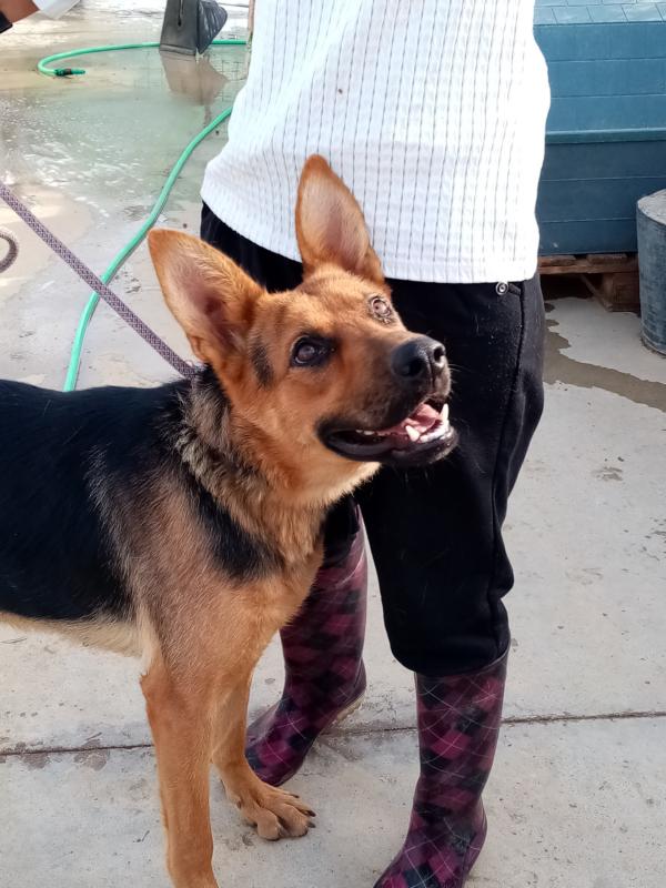 Dalia wurde in genau dieser Situation gefunden, angebunden in der Nähe eines kleinen Weihers, der im Hochsommer von Kindern zum Planschen genutzt wird, im Herbst ist es überall sumpfig, ein Mückenparadies, kaum jemand hält sich dort auf. Zum Glück kam eine Tierschützerin, die auch als Freiwillige die ArcoNatura unterstützt, mit ihren eigenen Hunden vorbei. Als ihre Vierbeiner unruhig reagierten, bellten und sie immer wieder in eine bestimmte Richtung dirigieren wollten, wurde Dalias Retterin natürlich hellhörig und folgte ihren Freunden… Was sie fand, war ein mehr als trauriges Bild. Eine junge Schäferhündin, abgemagert, dehydriert und einfarbig vom Matsch und Dreck, in dem sie sich verzweifelt gewälzt hatte, um sich von dem um den Hals geschlungenen Strick zu befreien. Zwei- wie vierbeinige Retter waren sich sofort einig, man befreite Dalia und ging umgehend nach Hause. Dort erhielten sowohl die Finder als auch die Gefundene erst einmal eine richtige Festtagsmahlzeit, und Dalia bekam obendrauf ein Bad und einen weichen Schlafplatz. Nachdem sich die bildhübsche Schäferhund-Dame ausgeruht hatte, durfte sie dann ins Tierheim der ArcoNatura umsiedeln, wo sie jetzt auf ihr Ticket ins große Glück wartet. Dalia ist ein junger, aufgeweckter Hund, neugierig und den Menschen sehr zugewandt. Sie ist sehr lernwillig und aufmerksam und sucht immer Kontakt mit den Ehrenamtlichen der Einrichtung. Auch mit den anderen Vierbeinern kommt unser hübsches Fotomodel prima aus, sie spielt mit Hingabe, kennt die Regeln und kann auch mit kleineren Artgenossen sehr fröhlich und vorsichtig durch den Auslauf toben. Für ihr Alter ist Dalia schon sehr ausgeglichen und ruhig. Sie beobachtet gern und liebt es, den Menschen zu gefallen. Wir könnten uns sehr gut vorstellen, dass diese Traumhündin, die von ihrem Halter auf so grausame Weise lieblos entsorgt wurde, noch zu einem echten Star auf dem Hundeplatz wird. Aber ob aus Dalia nun ein lustiger Familienclown wird, dessen einzige und wichtigste Aufgabe es ist, im Garten Ball zu spielen, oder ob sie beim Agility Preise abräumt, die Hauptsache ist, dass Dalia bald eine Familie findet, die diesen genialen Hund zu schätzen und zu lieben weiß, so dass wieder eine grausame und traurige Geschichte ein Happy End findet!