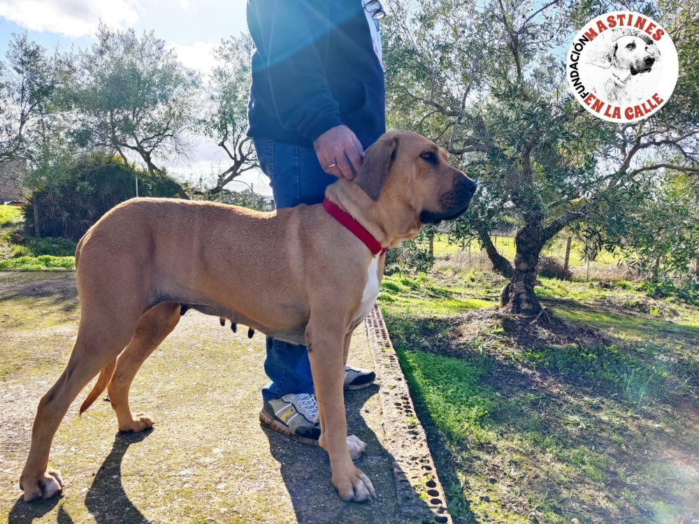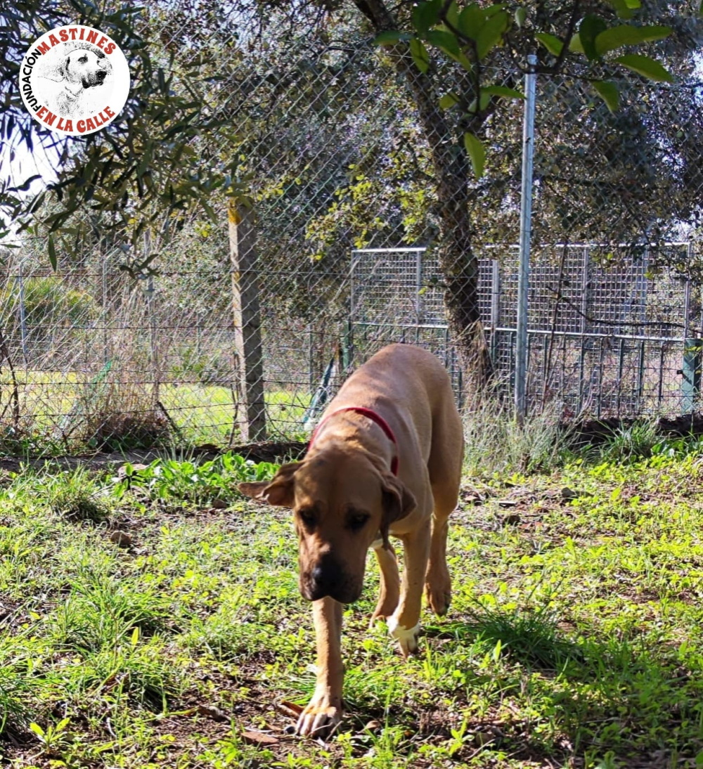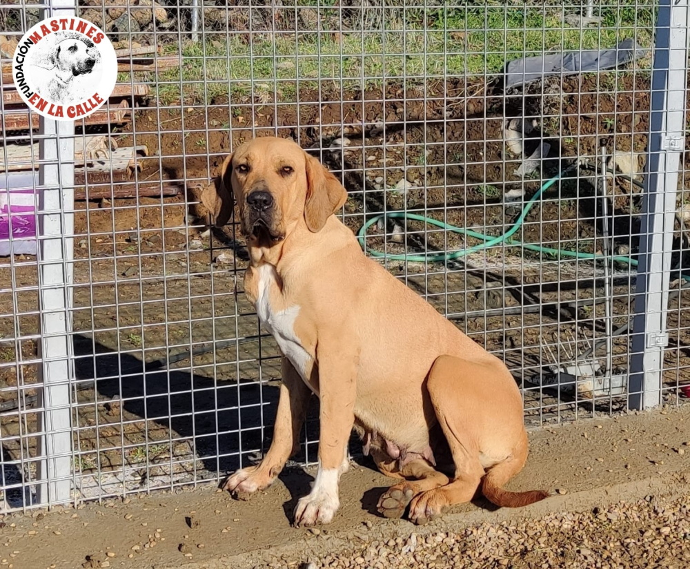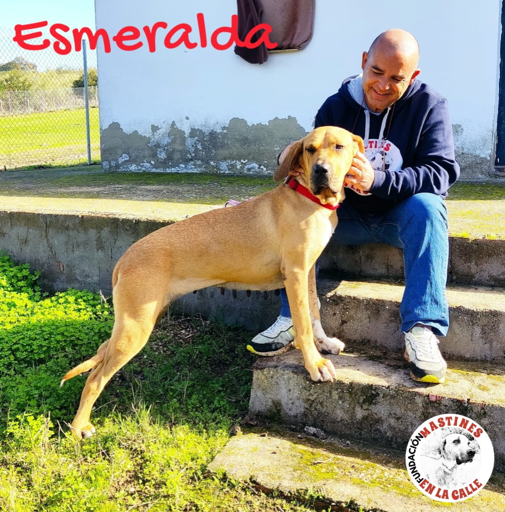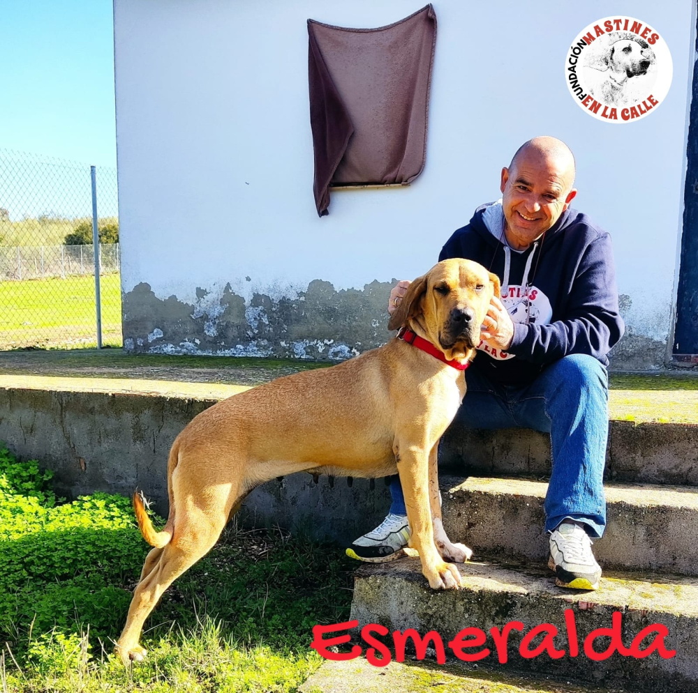 Esmeralda ist ein echtes Karamellbonbon von stolzen 40kg und einem riesigen sonnigen Herzen, das jedem Menschen, der mit ihr zu tun hat, ein Lächeln ins Gesicht zaubert. Unsere liebevolle und sehr kontaktfreudige Sabueso-Mix-Dame ist ca. 2 Jahre alt (Stand 12/25) und wurde auf der Landstraße ausgesetzt. Zum Glück waren die Tierschützer von „Mastines en la Calle“ schneller als die Hundefänger und konnten diese wundervolle, imposante und doch so zärtliche Knutschkugel retten.