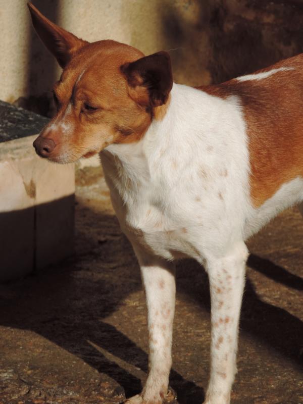 Fina wurde schon als Welpe mit ihrem Bruder Pitu vor der Tür des Tierheims ausgesetzt. Warum sich in den letzten zwei Jahren niemand für die lustige Hündin interessierte, ist den Mitarbeitern der Arconatura ein Rätsel.Die rot-weiße Herzensbrecherin ist eine interessante Mischung – ihre Ohren, die ab Windstärke 8 eine Leine unumgänglich machen, ihre helle Stupsnase und die aufgeweckten Augen mit dem typischen Stich ins Grüne lassen viel Podenco erscheinen, während ihre braunen Sommersprossen und ihr Körperbau auch Anlass geben, an Bretonenblut zu glauben.Dieser Genpool zeigt sich auch in Finas Charakter. Sie ist ein extrem intelligentes, lernfähiges Mädchen, das mit vollem Einsatz spielt und tobt und ohne Zweifel viel Spaß in ihr neues Heim bringt. Im Tierheim ist oft wenig Zeit, sich mit dem Energiebündel zu beschäftigen, aber die selbstbewusste Dame läuft gern im großen Rudel und spielt mit Artgenossen. Ihr Sozialverhalten gegenüber anderen Hunden ist also, wie bei den meisten unserer Schätze in der Vermittlung, sehr gut und man muss beim Spaziergang nicht mit unangenehmen Überraschungen rechnen. Natürlich braucht Fina noch Erziehung und muss noch lernen, wie man in einem Haus und in einer Familie lebt, aber die sympathische junge Dame begeistert durch ihre schnelle Auffassungsgabe und ihren Willen, sich anzuschließen, so dass wir fest davon überzeugt sind, dass sie in kürzester Zeit zur idealen Begleiterin für jeden aktiven Menschen wird.Sportlich sollte die Familie schon sein, die sich unserem Mädchen annimmt, oder bewegungsfreudige Kinder haben, die Fina zeigen können, was man alles mit Spielzeug anstellen kann. Außer einem schönen warmen, trockenen Plätzchen, ordentlich Zeit zum Spielen und Auspowern und einem quietschbunten eigenen Ball wünscht sich Fina eigentlich nichts Besonderes… Liebe, Geborgenheit und das Versprechen, der kleinen Fellnase ein Zuhause auf Lebenszeit zu schenken, das sollte allerdings selbstverständlich sein.