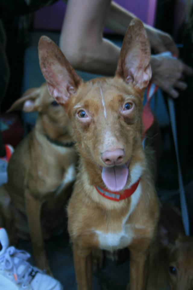 Im Vergleich zu einigen ihrer Leidensgenossen sieht man der kleinen Fly sehr deutlich an, dass sie auch schlechter Haltung stammt. Ihre Rippen stechen hervor, ihr Gesicht ist eingefallen und ihr Fell wirkt stumpf. Trotzdem begrüßte die rot-weiße Podenca ihre Retter ohne Misstrauen und mit einem strahlenden Lächeln – sie ist ein eben ein echter Sonnenschein. Auch Fly gehört zu der riesigen Gruppe Hunde, die von verschiedenen Tierschutz-Organisationen im Mai 2015 aus der Haltung eines Animal Hoarders befreit wurden.