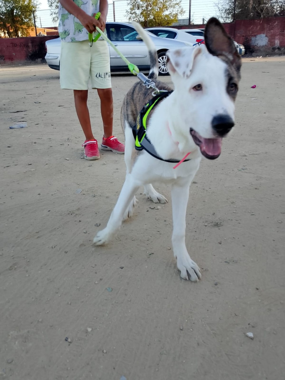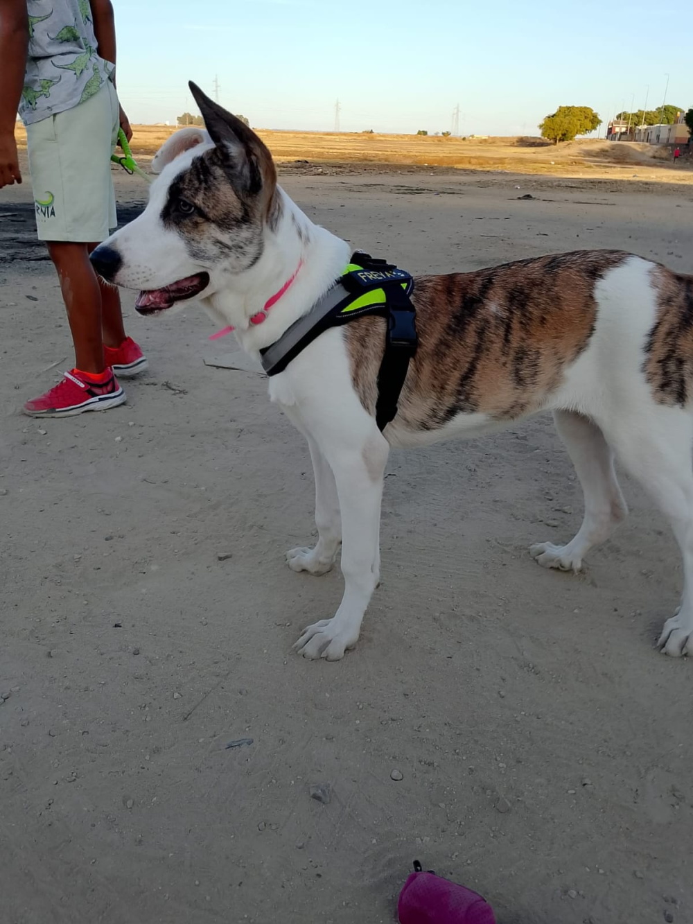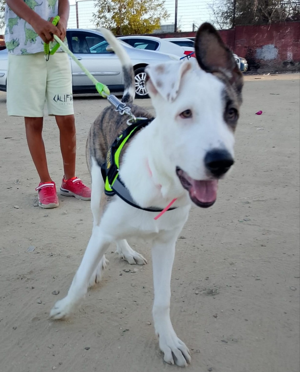 Freya ist eine große, elegante Hündin (ca. 70 cm) mit Windhund-Charme – und sehr wahrscheinlich mit einem Schuss Herdenschutzhund in den Genen. Sie kam vor einigen Monaten in die Obhut von „Mastines en la calle“, nachdem sie verlassen aufgefunden wurde. Heute zeigt die knapp einjährige (Stand 04/2026) Schönheit, wie aus abgelehnten Hunden die wundervollsten Fotomodelle und (noch viel wichtiger) Knutschkugeln werden.