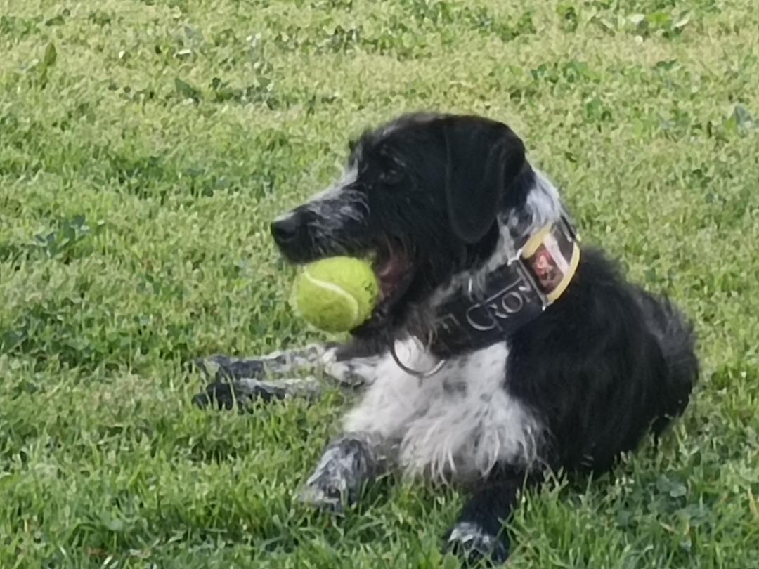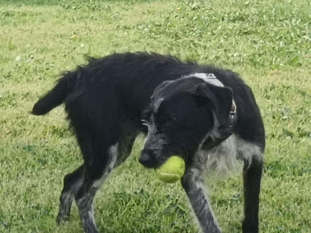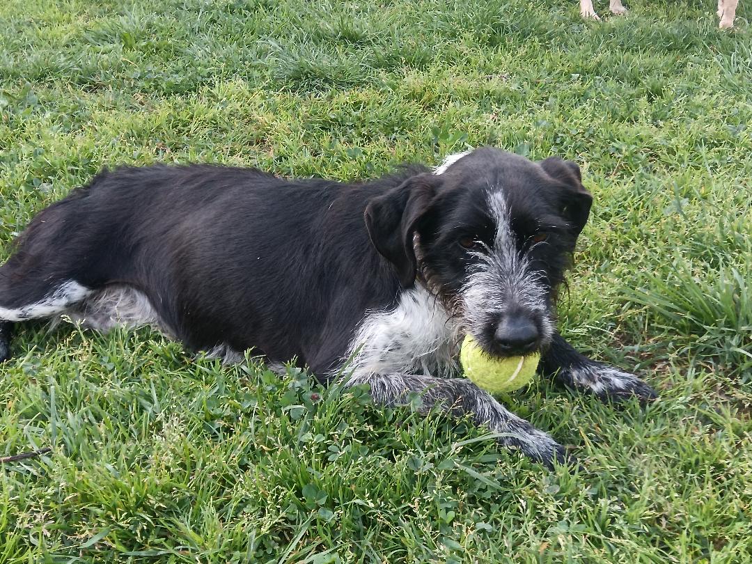 Hier kommt Frida – unsere charmante, lustige Jagdhund-Mix-Hündin, geboren im Dezember 2023, macht einfach jeden Tag ein kleines bisschen bunter! Mit ihrem markanten, witzigen Bart und all den weißen Pünktchen auf ihrem schwarzen Fell, als hätte jemand einen Farbklecksregen veranstaltet, ist sie schon optisch ein echtes Unikat. Dazu kommen noch ihre gesprenkelten „Söckchen“, die sie aussehen lassen, als wäre sie direkt aus einem Cartoon entsprungen.