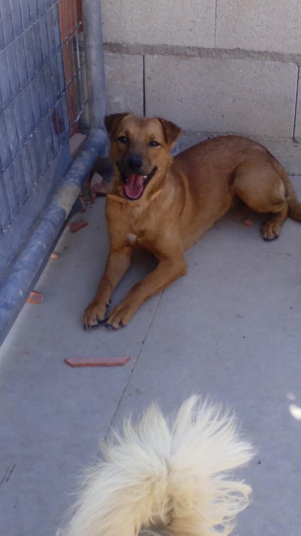 Gina war also Romeos Freundin, Schutzengel, Sprungbrett in ein neues Leben und zeigt sich nun auch noch als verspieltes und vertrauensvolles Wesen gegenüber allen Mitarbeitern. Kein Wunder hat sie schnell alle Herzen für sich erobert. Die erst eineinhalb Jahre alte (Stand 06/2015) karamellfarbene Schönheit mit den kleinen Ohren (die vielleicht auf einen Shar Pei in ihrer gut durcheinandergewürfelten Ahnenreihe hinweisen könnten) liebt es, sich von den Zweibeinern verwöhnen zu lassen. Streicheleinheiten, kleine Spiele (für mehr ist leider keine Zeit), ein Keks extra – es ist nicht schwer, Gina eine Freude zu machen. Die Dankbarkeit steht ihr ins Gesicht geschrieben und wer ihren großen dunklen Augen nicht verfällt, hat mit Sicherheit einen ernstzunehmenden Sehfehler.