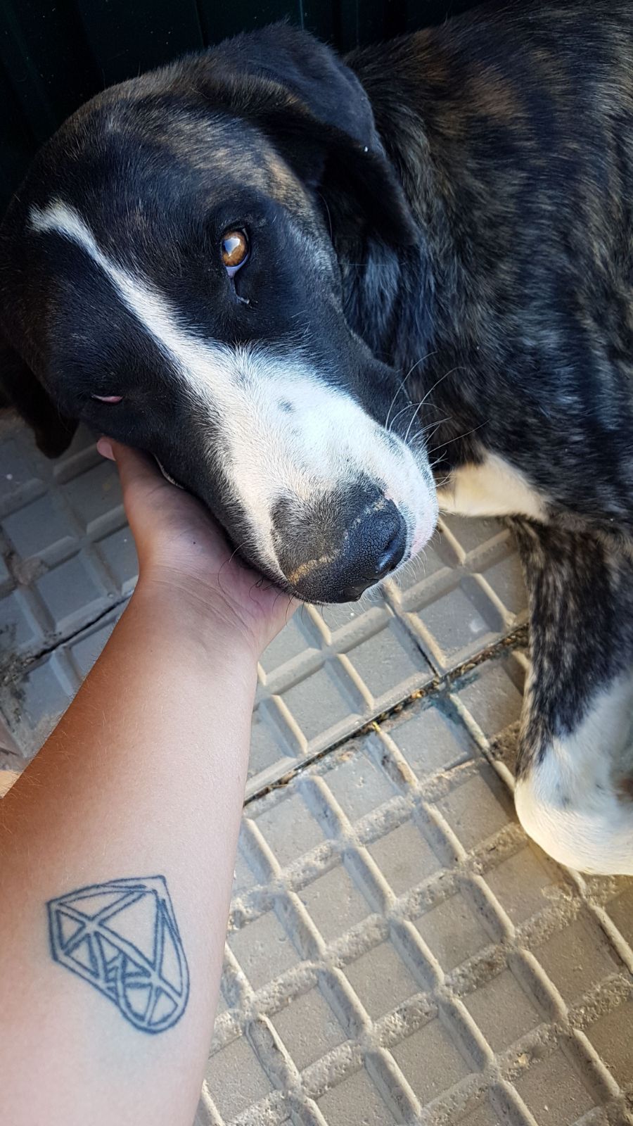Wenn auch für Sie die Bezeichnung “Hund” erst verdient hat, wer mindestens 30 Kilo auf die Waage bringt und den Kopf bequem auf dem Esstisch ablegen kann, dann sind sie bei unserem Neuzugang Golfo genau richtig.Unser Riesenbaby wurde bereits seit einigen Wochen immer wieder in der Innenstadt von Huelva gesichtet, wie er an Markttagen versuchte, etwas Essbares zu ergattern. Leider war der sanfte Riese den meisten Leuten aufgrund seiner enormen Größe unheimlich- anstatt einfach die Tierschützer anzurufen, um den großen Rüden einzufangen, bewarfen sie ihn jedoch lieber mit Steinen, um ihn zu vertreiben. Traurig zog Golfo jedes Mal von dannen und versuchte sein Glück am nächsten Tag erneut. Irgendwann wurden dann unsere Freunde von Dolmen Animal auf den liebenswerten Jungspund aufmerksam, lockten ihn an (was bei dem naiv- zutraulichen Kerl keine besonders große Anstrengung war), gaben ihm Futter, ein Dach über dem Kopf und jede Menge Streicheleinheiten.Da Golfo seinem Gegenüber gerne in die Augen schaut, ist er ein riesen Fan von Kindern. Diese kleinen Menschen haben es ihm echt angetan und unser großes Bärli ist für Unterhaltungen “auf Augenhöhe” jederzeit zu haben. Insgesamt findet Golfo Menschen einfach prima, denn mit ihren geschickten Händen eignen diese sich ganz ausgezeichnet zum Kraulen, Schmusen und Kuscheln. Ausgelassen (na ja- so ausgelassen ein knapp 40 Kilo schwerer Mastin eben ist) freut sich unser schlaksiger Pubertätslümmel dann auch, wenn einer seiner zweibeinigen Freunde den Zwinger betritt, springt vor Freude umher, sodass sich die langen Beine verknoten und packt sein breitestes Grinsen aus, um seine Unbeholfenheit zu überspielen. Natürlich sollten die Zweibeiner, die sich für unseren großen Schatz entscheiden, eine gewisse Standfestigkeit mitbringen- wenn Golfo seiner Freude Ausdruck verleiht, ist nichts und niemand vor seinen Liebesbekundungen sicher. Außerdem braucht ein solcher Halbwüchsiger im Flegelalter eben auch eine gesunde Mischung aus klaren Ansagen und liebevollem Lob von seinen Menschen, um schon ganz bald zu einem perfekter Begleiter in allen Lebenslagen zu werden.Golfo braucht kein Körbchen, sondern einen Korb, er passt weder in einen Smart noch in einen Cinquecento, doch eines ist sicher: wer einmal das Herz unseres oberknuffigen Dickköpfchens erobert hat, der wird es so schnell nicht wieder los. Ein echter Jackpot für alle Mastin- Fans wartet hier auf seine große Chance- worauf warten Sie denn noch?