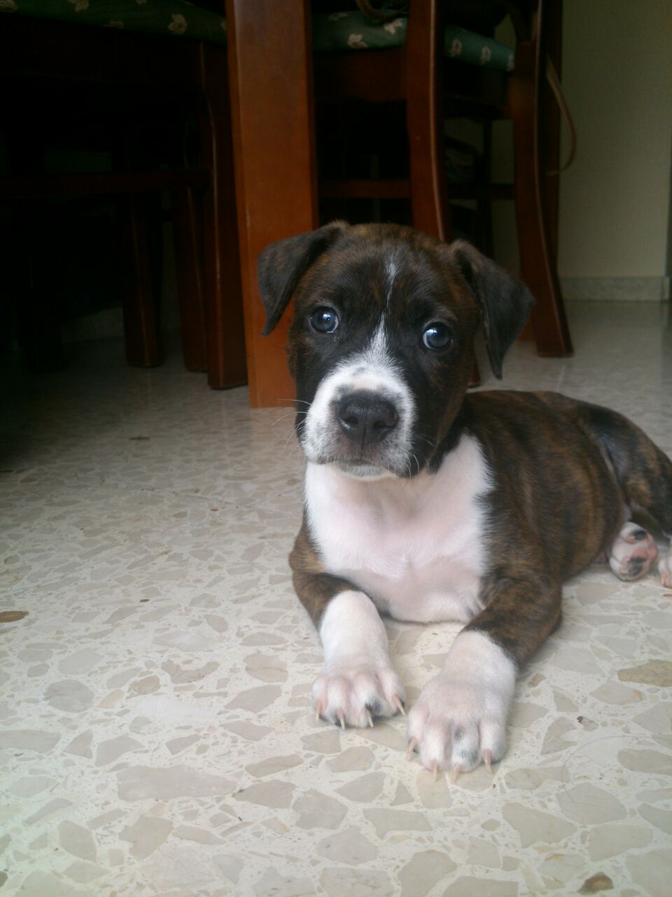 Als der lustige Windelrocker dann alt genug war, um seiner Mama so richtig auf die Nerven zu gehen, durfte der süße Wirbelwind in eine Pflegefamilie umziehen. Das ist auch immer die sicherere Variante der Unterbringung für Hunde seines Alters, denn der Impfschutz ist nicht immer schon zu 100% aktiv und im Tierheim lässt sich mit den ständigen Neuzugängen von Straßenhunden gar nicht vermeiden, dass die Kleinen oft Viren und Bakterien ausgesetzt sind, denen das oft schon durch den schweren Start ins Leben geschwächte Immunsystem noch nicht gewachsen ist. Inzwischen ist unser pumpelgesunder Herzensbrecher vier Monate alt, darf damit ins Ausland ausreisen und hat sich zu einer wunderhübschen Knutschkugel entwickelt. Er hat das gestromte Fell seiner Mama, allerdings ergänzt durch edle weiße Applikationen, die ihn schon fast wie einen kleinen Boxer aussehen lassen (was durch seinen rosa Welpenbauch, der nicht gerade nach Unterernährung aussieht, noch verstärkt wird). Wir vermuten aber, dass mit dem Höhenwachstum auch Gringo noch etwas schmaler und eleganter im Körperbau wird, für ein echtes kompaktes Kraftpaket ist er jetzt schon zu wendig. Aber was auch immer aus dem fröhlichen Überraschungs-Ei wird, er verspricht ein richtiger Hingucker zu werden! Abgesehen vom Äußeren, das ja sowieso nur eine untergeordnete Rolle spielen sollte, ist Gringo jetzt schon ein helles Köpfchen, das seine Umwelt mit viel Spaß, Neugierde und Spielfreude in Beschlag nimmt. Er zeigt ein großes Vertrauen in die Zweibeiner und liebt es (wie jeder Welpe), wenn Zeit in ihn investiert wird und er neue Dinge lernen, erforschen und auch hin und wieder auf ihre Haltbarkeit testen darf. Gringo ist ein Sonnenschein, der auf tapsigen Welpenpfötchen in Ihr Leben hüpfen möchte, um an Ihrer Seite zu lernen, Sie viele Jahre als souveräner, gut geführter Rüde und als allerbester Freund zu begleiten. Lassen Sie sich die Chance nicht entgehen, zu sehen, was aus diesem Krümel einmal wird!