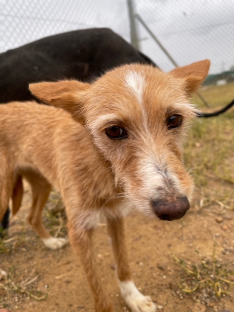 Rotes Fell, Fledermausohren wie aus dem Lehrbuch – Helga kann nicht verleugnen, dass in ihrer Ahnenreihe einige Podencos zu finden sind. Allerdings erzählt ihre Lakritznase von anderen Einflüssen, und ob ihr lustiges Rauhaarfell, das ihr auch den witzigen Damenbart verpasst, von einem der wundervollen Laufhunde stammt oder aus ganz anderer Richtung, wird wohl auch immer ein Geheimnis bleiben. Aber eins kann man festhalten, Helga ist ein geniales, hübsches und sehr freundliches Mädchen.