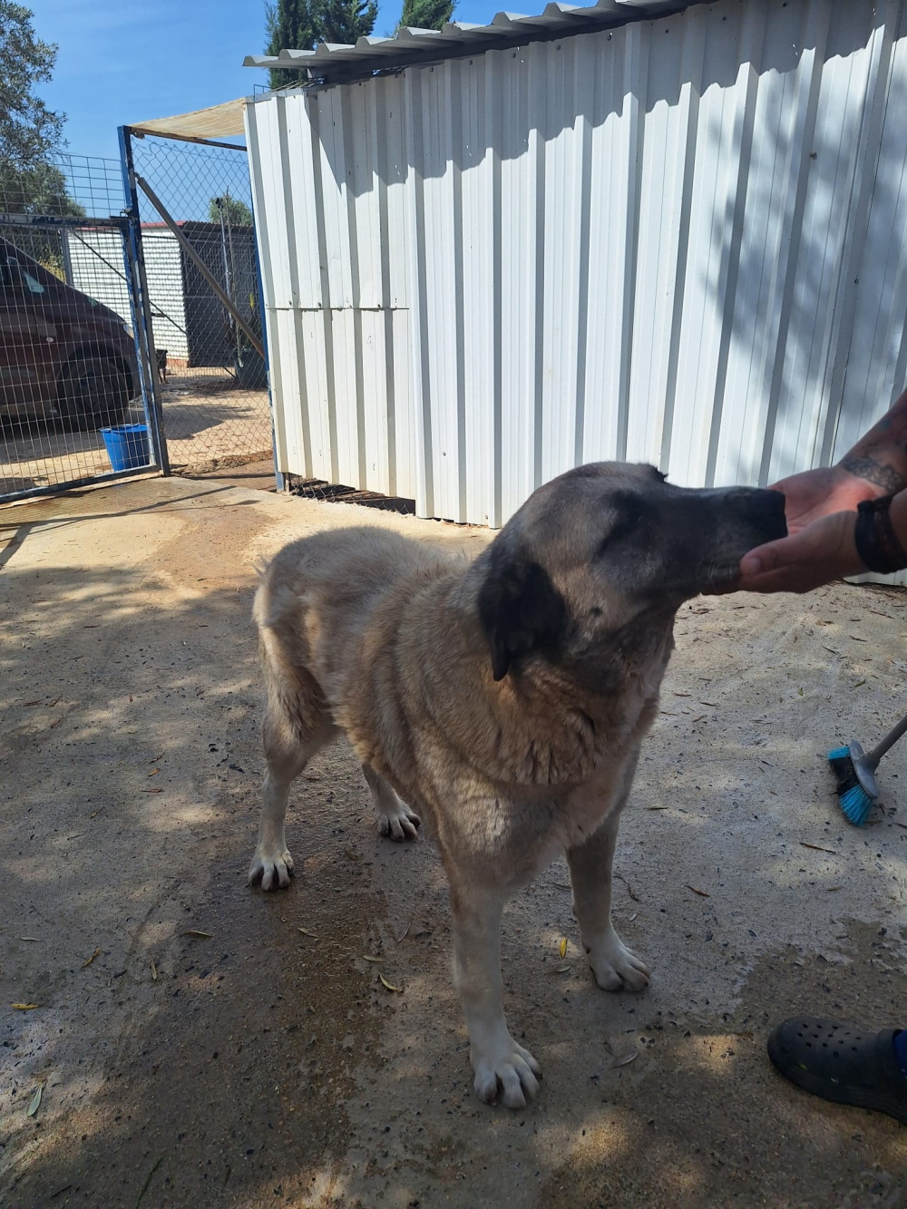 Vor einigen Wochen erhielten die Tierschützer von Dolmen Animal den Anruf des Besitzers einer Finca in der Nähe von Huelva, ihm sei ein Welpe zugelaufen, der abgeholt werden müsse. Unsere Partner machten sich also auf, um das Findelkind einzusammeln und fanden auf der Finca auch wie angegeben den kleinen Orson in bester Laune (er sucht übrigens auch ein neues Zuhause, schaut ruhig mal auf unsere Vermittlungsseite!). Doch unweit des quirligen Kohlestückchens lag Isla wie ein Häuflein Elend in der prallen Sonne, angekettet, abgemagert und lethargisch. Die Tierschützer brachten es natürlich nicht fertig, ohne die leidende Hündin zu gehen, und überredeten den Besitzer, auch Isla in die Hände von Dolmen zu geben. Der kleine Orson musste zum Tierarzt, um nach einem Chip zu suchen, und Isla sollte neben einem Routinecheck gleich einen Termin für die Kastration bekommen – aber der musste verschoben werden, denn es zeigte sich, dass die freundliche Mastin-Mix-Dame bald Mama werden würde. Der frühere Halter hatte erzählt, dass Isla schon öfter geworfen hatte, er aber den Vater nicht kenne und er habe die Welpen immer „entsorgt“ (ein schönes Wort für „ermordet“). Diesmal sollte Isla endlich Mutter sein dürfen – und nun ist es so weit. Isla ist eine liebevolle und zärtliche Mama, die die Geburt trotz ihres immer noch geschwächten Zustands mit Beistand der Tierschützer wunderbar gemeistert hat. Die kommenden Wochen werden für Isla und ihre Rasselbande nur unter dem Motto „Verwöhnprogramm“ stehen. Die Kleinen sollen gesund groß und fröhliche Weltentdecker werden, Isla muss noch einige Kilos zulegen und ihre traurige Vergangenheit mit Hilfe von Unmengen Keksen und ausgiebigen Streicheleinheiten vergessen dürfen. Und dann? Ja, dann hoffen wir, dass Mama und Nachwuchs bald ihr Ticket ins große Glück lösen können und zu ihren künftigen Familien aufbrechen, in ein Leben weit weg von Vernachlässigung und Einsamkeit.