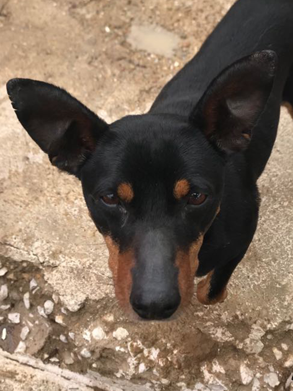 Ein breites Grinsen, überdimensionale Pommestütenohren und stets gute Laune- das ist Jake! Ein Freiwilliger der ArcoNatura wurde auf den kleinen Rüden aufmerksam, der in seiner Nachbarschaft lebte, weil dieser immer schlechter aussah, Fell verlor, schwächer und schwächer wurde und zuletzt vor Schwäche kaum noch stehen konnte. Auf den Zustand des Hundes angesprochen, erwiderte sein Besitzer, dass der ca. 2 Jahre junge (stand 10/ 2016) Pinschermix wohl irgendeine Krankheit hätte, er jedoch weder Geld noch Zeit hätte, den kleinen Kerl behandeln zu lassen. Für Jake war es bereits “Fünf vor zwölf”, als er von den Mitarbeitern des Tierheimes zu Montse in die Klinik gebracht wurde. Dort stand leider schnell fest: Jake ist Leishmaniose- positiv, was auch das fehlende Fell und den schlechten Zustand des lustigen Rüden erklärte. Dennoch hatte unser kleiner Herzensbrecher Glück im Unglück: er sprach hervorragend auf die medikamentöse Behandlung an und wie sie auf den Fotos sehen können, ist auch sein schickes schwarzes Haarkleid bereits nachgewachsen. Falls Sie sich bis zu diesem Punkt für Jake interessierten und nun drauf und dran sind, ihn aufgrund seiner Erkrankung als neues Familienmitglied auszuschließen, zögern sie bitte nicht, seine Vermittlerin über Leishmaniose und deren Behandlung zu befragen. Viele Hunde leben auch mit einem positiven Testergebnis genauso gut wie ein “gesunder” Hund- die Kosten für die Behandlung mit Allopurinol bewegen sich im Centbereich.Jake hat sich im Tierheim innerhalb kürzester Zeit zu einem der Lieblinge der Mitarbeiter gemausert. Der mittlerweile äußerst hübsche Kerl ist extrem anhänglich und möchte am liebsten den ganzen Tag gestreichelt werden. Leider ist hierfür im stressigen Tierheim- Alltag kaum Zeit, daher leidet Jake unter der Situation, nur einer von vielen zu sein. Bereits jetzt zeigt sich, dass er ein eher unterwürfiger und ruhiger Zeitgenosse ist, er möchte gefallen und alles richtig machen. Mit seinen Artgenossen ist der unkomplizierte Schatz absolut verträglich, geht Streitereien aus dem Weg und ist sehr harmoniebedürftig.Wir suchen für unseren ungeschliffenen Diamanten ganz besondere Menschen, die bereit sind, einem Hund mit Handicap die Chance zu geben, der glücklichste Sofabesetzer der Welt zu werden. Unser schöner Prinz hat es verdient, endlich geliebt zu werden und seiner Familie dafür alles zu geben, was er hat: sein riesengroßes Herz. Na, überzeugt? Dann nichts wie ran an die Tasten! Jakes Vermittlerin freut sich schon auf Ihre Anfrage.