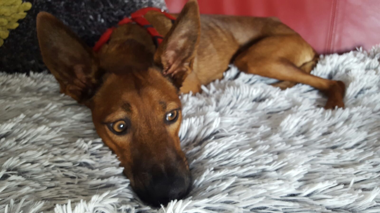 Kleines Rehlein haben wir sie genannt… Unsere wunderschöne Jazmin! Als unsere hochbeinige Prinzessin gefunden wurde, war von diesen treuen Augen, dem frechen Grinsen und der neugierigen Spürnase noch nichts zu sehen, sie war ein wenige Wochen altes Fellbündel mit großen dreckigen Ohren, das auf einer Müllkippe ums Überleben kämpfte. Zum Glück fiel sie tierlieben Menschen auf, die die im Oktober 2015 geborene junge Dame zunächst bei sich aufnahmen und den TSV ARCA um Vermittlungshilfe baten. Um der elfengleichen Schönheit die Suche nach einem neuen Zuhause in Deutschland ein wenig zu erleichtern, durfte Jazmin im Oktober 2016 in ihre heutige Pflegefamilie einziehen. Bereits bei der Ankunft in Rastatt eroberte unsere, derzeit noch ein wenig knochige, Podenco- Mix- Dame die Herzen aller Anwesenden im Sturm. Ein solch zartes Wesen, mit den schönsten bernsteinfarbenen Augen, die eine Dame von Welt natürlich ganz gekonnt einzusetzen vermag, zieht natürlich sofort alle Blicke auf sich. In ihrem neuen, vorübergehenden Zuhause zeigte sich die hübsche Fledermaus dann auch auf Anhieb sehr kontaktfreudig und absolut verträglich mit sämtlichen vierbeinigen Mitbewohnern, selbst mit Katzen kommt Ihre Hoheit Jazmin bestens zurecht. Podencos – unsere Fledermausohren haben wir schon oft thematisiert und immer wieder bin ich begeistert, zu sehen, wie schnell diese wundervollen und sensiblen Wesen ihre neuen Familien erobern und jedes Herz im Nullkommanichts in Beschlag nehmen, das bereit ist, sich auf die Eigenarten dieser eleganten Supersportler einzulassen. Die spanischen Laufhunde, die sich unter dem Begriff „Podenco“ versammeln, unterscheiden sich je nach Region nochmal im Aussehen – und die feingliedrigsten und am höchsten gewachsenen Wesen sind die kanarischen Podencos, von denen sicherlich auch unsere Beautyqueen abstammt. Ganz typisch für Ihre hochtrabenden Vorfahren bevorzugt Jazmin erhöhte Liegeplätze, von denen aus sie ihre gesamte Untertanenschaft bestens beobachten kann. Lässt sich die Grande Dame dann herab, ganz einfachen Vergnügungen wie Toben im Garten, der Suche nach Leckerlis oder dem Stöbern in Pflegefrauchens Handtasche nachzugehen, entdeckt man eine herrlich alberne Seite in unserer erst einjährigen Fledermaus. Da werden Grimassen geschnitten, die langen Beinchen in alle Richtungen gestreckt, die wildesten Verrenkungen gemacht- ja, um dann von einem Moment auf den anderen den unmöglichsten Positionen einfach einzuschlafen und von den nächsten Abenteuern zu träumen. Übrigens fährt Jazmin bereits total entspannt im Auto mit, übt fleißig, schön an der Leine zu gehen und lässt sich auch von vorbeidonnernden LKW und Motorrädern nicht beeindrucken. Wir wünschen uns für unser Fotomodell ganz schnell eine sportliche und lustige Familie, die sich darauf freut, aus den momentan 9 Kilogramm Körpergewicht mindestens 12 zu machen. An Jazmin soll es nicht liegen, sie ist für jedes Leckerli zu begeistern und es wird sicherlich nur eine Frage der Zeit sein, bis man ihre Rippen nur noch erahnen kann. Unsere Musterschülerin ist absolut kinderfreundlich, jedoch sollten die kleinen Zweibeiner schon eine gewisse Größe und Ruhe im Umgang mit Hunden haben, da ein solches Rehlein eben trotz Furchtlosigkeit leicht verschreckt werden kann. Schauen Sie in diese braunen Augen, die wie mit Kohle umrandet scheinen- wollen Sie mir und sich selbst wirklich weismachen, dass Sie widerstehen können? Wollen Sie gar nicht? Jazmin freut sich schon darauf, Sie kennen zu lernen und ganz viel Spaß und Freude in Ihr Leben zu bringen!