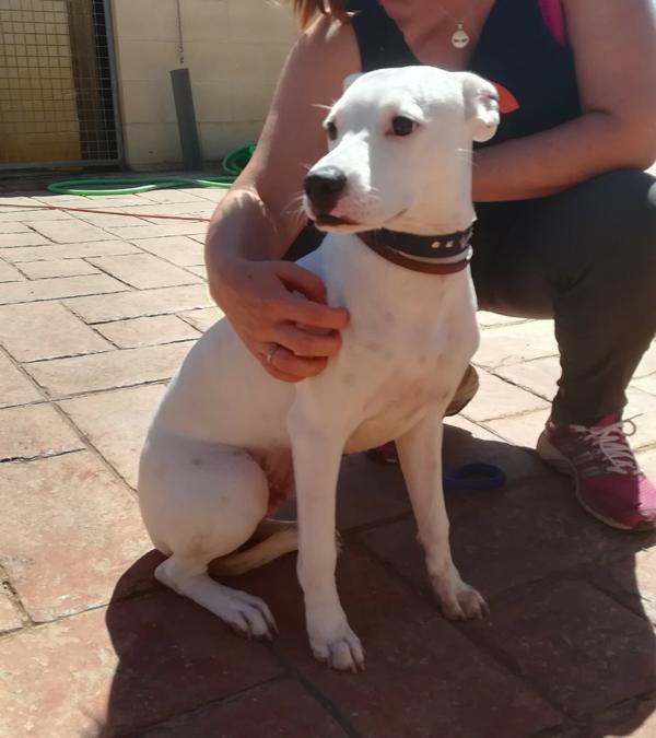 Jazz ist ein weißer Hund mit (zugegeben sehr dezenten) schwarzen Flecken, aber er ist weder Dalmatiner noch Pointer, sondern eine echte Traummischung. Jazz hat Terrierblut, und zwar das coole, unaufgeregte des Bodegueros und dazu eine große Portion Boxergene. Es ist sicher nicht übertrieben zu behaupten, dass da zwei der lustigsten Hunderassen aufeinandertreffen und ein Zusammenleben mit einem Inhaber einer solch interessanten Ahnenreihe ganz bestimmt witzig und spannend ist. Jetzt fragen Sie sich vielleicht, wie ein solch wunderbares Unikum wie Jazz in die Arca Sevilla kommt, noch dazu im zarten Alter von 8 Monaten (Stand 09/2020). Nun, das ist eine traurige Geschichte, denn Jazz hatte schon ein tolles Zuhause. Unser absolut liebenswerter Springinsfeld lebte bei einem Mann, für den sein kleiner bester Freund wirklich das Ein und Alles war (und ist), niemals konnten die beiden sich vorstellen, so schnell wieder getrennt zu werden. Aber Jazz‘ Besitzer hatte vor kurzem eine komplizierte Rückenoperation, die leider nicht so erfolgreich verlieft, wie man sich das erhofft hatte. Treppensteigen, langes Stehen, Gehen, all das ist für den schmerzgeplagten Mann im Moment der absolute Horror, und man kann nicht sagen, wie lang das so bleiben wird oder ob es sich überhaupt nochmal bessert. In einem mehrstöckigen Haus gefangen, kam Jazz so gut wie nicht mehr vor die Tür. Der junge Hund musste immer warten, bis ein Nachbar ein paar Minuten Zeit hatte, mit ihm zu gehen – oft viel zu kurz und gerade ausreichend, um seine Geschäfte zu erledigen. Auch Ball- und Zerrspiele waren natürlich undenkbar – und so traf Jazz‘ Herrchen eine schwere, aber unseres Erachtens sehr tapfere und weise Entscheidung. Er gab Jazz in die guten Hände der Arca und hofft jetzt, dass sein fröhlicher Kumpel bald eine tolle Familie findet, die dem cleveren und aufgeweckten Hund das Leben bieten kann, das er verdient. Jazz ist ein Energiebündel, das Spaß und Spiel liebt, schnell lernt, mit Hingabe kuschelt, andere Hunde toll findet und auf jeder Couch toll aussieht … Was soll ich mehr erzählen? Setzen Sie sich mit unseren Vermittler*innen in Verbindung, wenn Sie ein aktiver, lustiger, verschmuster Mensch sind (und mit anderen Ihrer Art zusammenleben), und erfahren Sie, wie Jazz bald Ihr Leben bereichern kann.