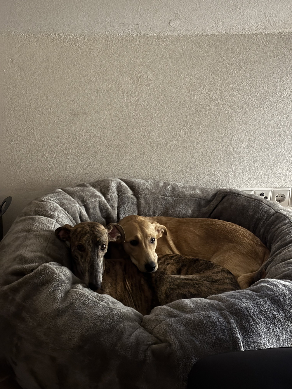 Juna und Pipa sind zwei entzückende junge Damen (sie werden an Weihnachten 2025 6 Monate alt sein), die zusammen mit ihren Geschwistern in der Nähe des Tierheims in Huelva gefunden wurden. Einige der lustigen Gesellen haben bereits nette Familien in Spanien für sich gewonnen, Nune, eine weitere kleine Dame aus dem neugierigen Gewusel, reist im November nach Deutschland zu ihrer Pflegefamilie. Aber Juna und Pipa sitzen im Zwinger und müssen die Welt, die sie so gern erobern würden, weitgehend durch Gitterstäbe betrachten.