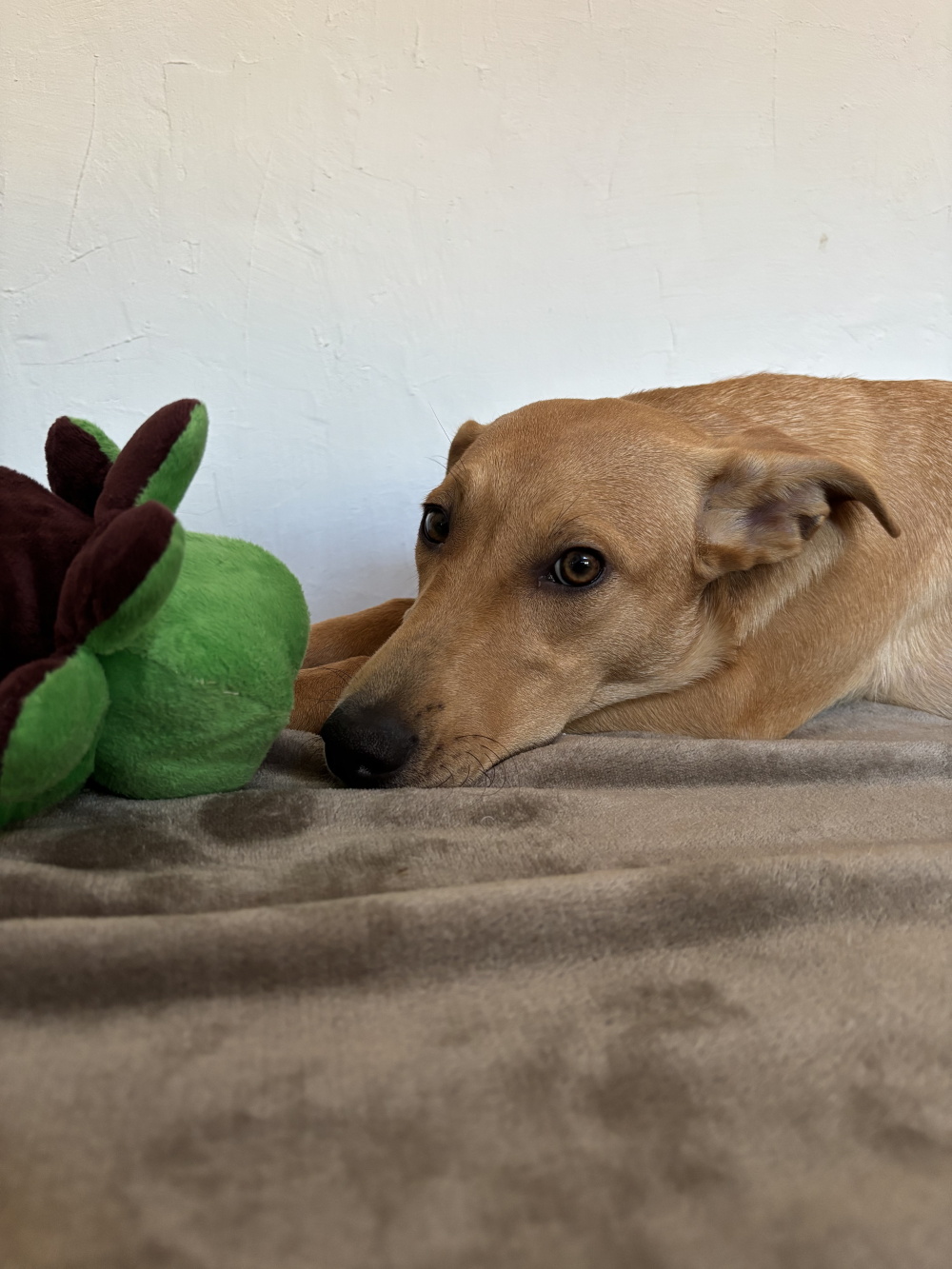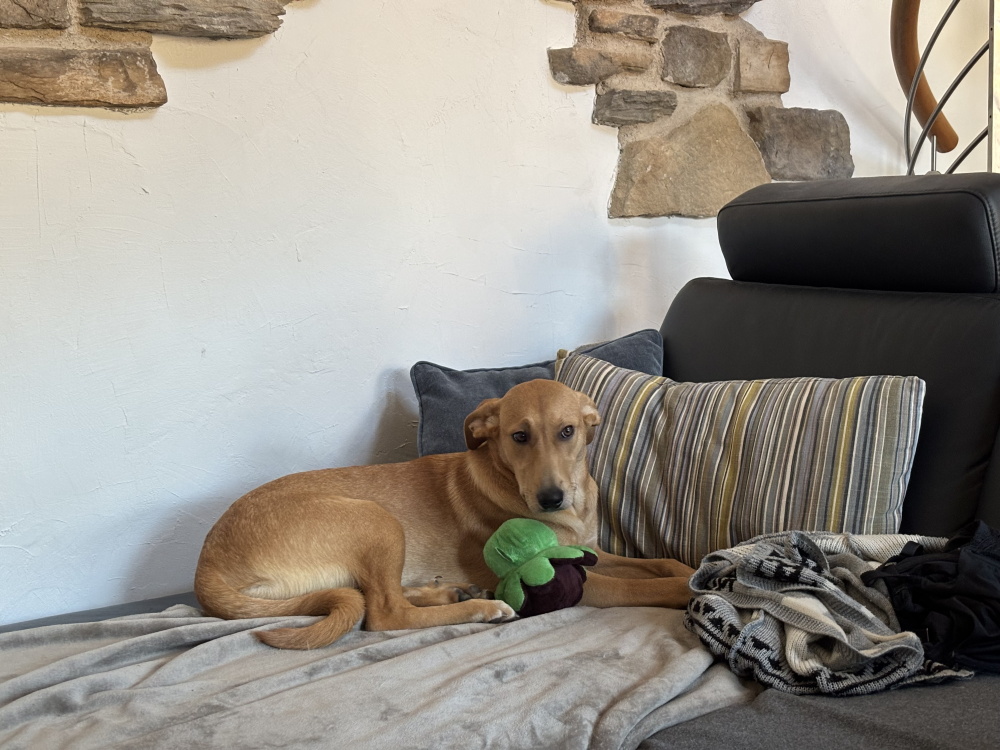 Wir wünschen uns für dieses caramellfarbene Mädchen eine Familie mit Geduld und einem souveränen Ersthund, an dem sich Juna orientieren kann. Juna ist sehr verschmust und sehr ruhig im Haus. Gemeinsam mit den anderen Hunden kann sie auch schon mal alleine bleiben.