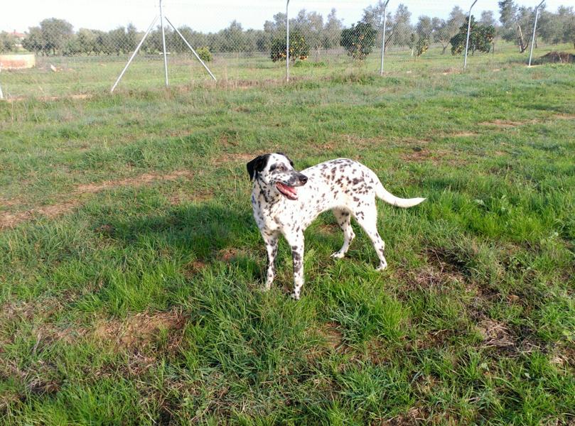 Pünktchen-Fans aufgepasst, hier kommt Kaled! Über unsere wunderschöne Dalmatiner- und / oder Pointer-Mix-Dame kann man einfach nur in Superlativen erzählen. Sie ist das liebevollste, anhänglichste und zärtlichste Wesen, das man sich nur vorstellen kann und sucht ununterbrochen die Gesellschaft der Menschen. Wenn man Kaled so erlebt, ist ihre Geschichte umso trauriger, denn die so ruhige und fantastisch einfühlsame Hündin lebte allein und von ihrer Familie fast vergessen auf einem Flachdach – mehr als fünf lange Jahre! Irgendwann wurde eine junge Tierschützerin auf Kaled aufmerksam und da ihre Halter nicht das geringste Interesse an der bildschönen Hundedame hatten, übergaben sie Kaled ohne Aufsehen in die Hände des Mädchens. Kurz darauf durfte Kaled ins Tierheim der Dolmen Animal Huelva einziehen.Kaled versteht sich im Tierheim gut mit allen anderen Hunden, ihre ruhige, aber doch spielbereite Art, ihr Wesen, das jedem Ärger aus dem Weg geht und ihre ausgeglichene und im Rudel auch ausgleichende Haltung machen sie zu einer Freundin von Alt und Jung, Dick und Dünn, Klein und Groß. Ihre vierbeinigen Mitbewohner genießen es, in der Nähe der empathischen Hundedame zu sein und Kaled kann sich über Einsamkeit bestimmt nicht mehr beklagen. Obwohl sie das sichtlich genießt, sich gerne im Rudel bewegt und spielt und die Bewegung und geistige Auslastung zu schätzen weiß, ist Kaled aber noch viel mehr den Zweibeiner zugetan. Wenn die Freiwilligen ins Tierheim kommen, steht Kaled in der ersten Reihe, sie bettelt um Streicheleinheiten und verteilt großzügig Küsschen. Die gepunktete, fast sechs Jahre alte (Stand 03/2016) Herzensbrecherin ist einfach ein Menschenfreund und wünscht sich nichts mehr, als endlich ein richtiges Mitglied einer Familie zu werden. Kaled ist das liebste Mädchen, das man sich nur vorstellen kann – geben Sie ihr bitte eine Chance, Ihr Herz und Ihre Couch zu erobern , und dann zeigen Sie diesem Goldschatz bitte die große, schöne Welt, die ihr bis jetzt immer verschlossen geblieben ist!