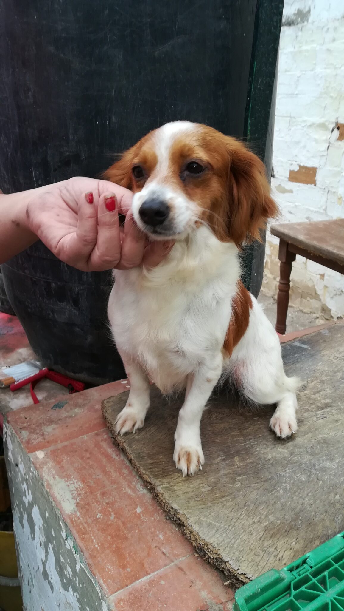 Wie unsere fröhliche Welpenschar, stammt auch Keka aus dem Haushalt einer Frau, die irgendwann einmal begann, Tiere aus sehr guten Gründen bei sich aufzunehmen. Aus einem Hund wurden zwei, dann zehn, und da keiner kastriert war, auch bald 20 und mehr… Animal Hoarding ist eine Erkrankung, die eng verwandt ist mit dem Messie-Syndrom. Ohne Hilfe schaffen es die Betroffenen selten, sich aus ihrem Leiden zu befreien. Das Schrecklichste an dieser Form einer psychischen Störung ist, dass nicht nur die kranken Menschen die furchtbaren Konsequenzen zu tragen haben, sondern eben auch (und vor allem) die betroffenen Tiere. Es ist erstaunlich, dass die Dame es tatsächlich aus eigenem Antrieb schaffte, die Arca um Hilfe zu bitten, auch wenn das, was unsere Partner dann sehen mussten, ein erneuter Stich ins Herz jedes Tierschützers war. In der Wohnung der verwirrten Dame fanden sich etliche verwahrloste und abgemagerte Haustiere, die sich in ihren Fäkalien stehend von Müll ernährten und aufs Heftigste von Parasiten geplagt wurden. Die Arca konnte leider nicht alle Hunde auf einmal aus ihrer Hölle befreien, aber man half so gut es eben geht mit Medikamenten, Futter und die Kleinsten der der Kleinen rettete man sofort vor dem sicheren Tod. Nach und nach finden immer mehr Hunde aus der Wohnung in die Obhut unserer Freunde. Auch Keka wohnt jetzt in der Arca Sevilla und die hübsche Mischlings-Dame hat schon prima verstanden, dass sich ihr Leben nun zu einem Besseren gewendet hat.Keka ist ca. zwei Jahre alt und müsste ich ihre Rasse raten, kämen mir sowohl ein King Charles Cavalier Spaniel als auch der Bretone in den Kopf – wobei dann noch irgendetwas sehr Kleines den genetischen Schlüssel für Kekas überaus handliche Größe beigetragen haben muss. Tatsache bleibt aber, dass die niedliche Lady einer der wenigen Hunde aus der Haustier-Sammel-Hölle ist, der schon nach kürzester Zeit alle Ängste vergessen hat und schlicht das neue Leben genießt. Selbst wenn der Betonzwinger unbequem ist und die Gitterstäbe ihr nur einen sehr eingeschränkten Blick auf die große Welt gewähren, Keka freut sich über regelmäßige Mahlzeiten, Streicheleinheiten, einen trockenen und sauberen Schlafplatz und viele neue Freunde.Keka ist klein, witzig, unerfahren, aber sehr neugierig und intelligent – wir können uns wirklich vorstellen, dass sie auch für komplette Hundeanfänger perfekt geeignet wäre, zumal sie die Welpenzeit und die Pubertät schon hinter sich gelassen hat, aber immer noch ein richtig junger Hund ist. Keka ihrerseits ist für jede Karriere offen, die nur einen abwechslungsreichen Alltag mit geduldigen, liebevollen und lustigen Menschen verspricht, – und ihre neuen Zweibeiner sollten eine Begabung im Streicheln und Liebhaben vorweisen können (auf Wunsch von Keka angefügt).