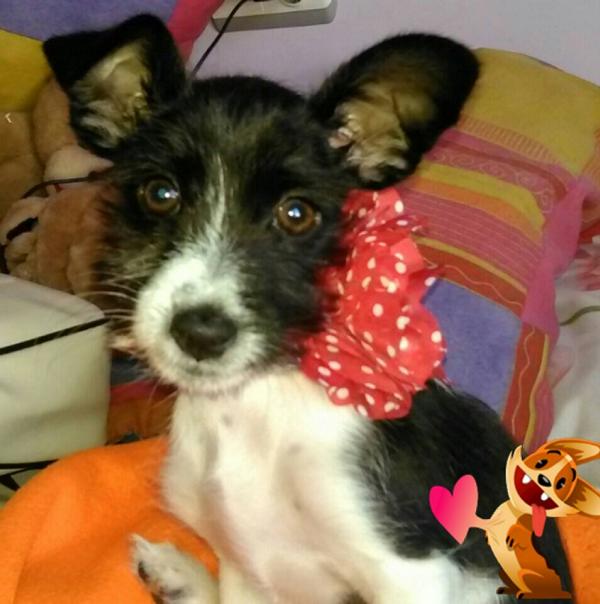 Noch keine drei Monate alt (Stand 10/2015), 18cm hoch (oder besser niedrig), energetisch wie ein Gummiball, neugierig wie die Hausverwalterin in einem Mehrfamilienhaus und mit ihren riesigen Ohren ein kompletter Cuteness-Overload … Nun sind Sie auch neugierig? Gut so, denn hier kommt Leia!Leias Mutter wurde auf den Straßen von Linares entdeckt, als sie nach Futter suchte. Die ArcoNatura erhielt einige Anrufe von besorgten Tierfreunden, da unübersehbar war, dass die freundliche Hündin erst vor kurzem Mama geworden war. Man versuchte der pfiffigen Miniatur-Ausgabe zu folgen, doch einige Male wurden die wirklich nicht unerfahrenen Tierschützer einfach abgehängt. Letztlich gelang es aber doch, ausfindig zu machen, wo die lustige Bande lebte und alle Welpen konnten samt ihrer inzwischen sehr zutraulichen Mama eingesammelt und in Sicherheit gebracht werden.Die Hundebabys waren und sind alle quietschfidel, bildhübsch und mittlerweile auch durch die Bank gesund. Allerdings war das bei Leia nicht von Anfang an der Fall. Die kleine schwarz-weiße Spaßkanone hatte eine Verletzung an ihrer Rute, vermutlich einem Biss geschuldet. Da die Wunde hochgradig infiziert und damit zu befürchten war, dass Leia der Entzündung zum Opfer fällt, entschied man, dass es sicherer sei, den kleinen Schwanz etwas zu kürzen. In einem unkomplizierten Eingriff wurde also ein Teil der Rute entfernt und Leia muss nun etwas mehr mit ihrem entzückenden kleinen Poppes wedeln, um der Welt ihre grenzenlose Zuneigung zu zeigen. Leia ist ein Wirbelwind und hat ihre Brüder gut im Griff. Ein breites Grinsen lässt ihren frechen und weltoffenen Charakter schon durchscheinen und wir sind uns ganz sicher, dass in der Mini-Maus ein richtiges Powerpaket steckt. Neben endlosen Raufereien und ersten Ballspielen, liebt Leia vor allem Rumkugeln … also, sie liebt DAS Rumkugeln, nicht DIE Rumkugeln, und wenn sie dann schon auf dem Rücken liegt, möchte sie gerne stundenlang am Bauch gestreichelt, gekitzelt und massiert werden. Leia ist ein Baby, für alles und jeden offen und natürlich noch rund um die Uhr gut gelaunt. Jetzt braucht sie nur noch eine liebevolle Familie, bei der sie den Rest der Welt erobern kann – vielleicht bei Ihnen?