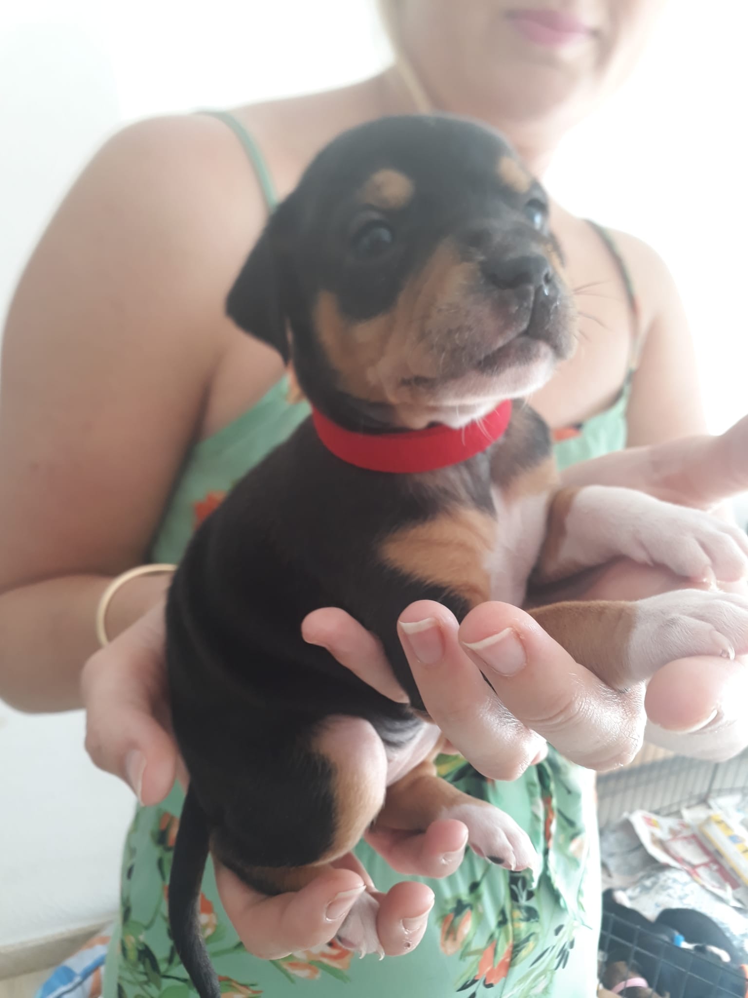 Nadja hat die Geburt ihrer Rasselbande am 03.03.2021 bestens gemeistert und ist ihren Babys eine ganz wundervolle Mama. Die selbst noch so junge Hündin – Nadja feierte im Januar 2021 ersten Geburtstag – war extrem liebevoll und aufmerksam, hat sich selbst ganz hintenangestellt und genießt jetzt, dass ihre 24-pfotige Schar mit mittlerweile 6 Wochen auch mal feste Nahrung zu sich nimmt und beginnt sich selbst zu beschäftigen. Allerdings ist der Alltag der Pflegefamilie um einiges bunter geworden, und sicher geht keiner mehr durchs Haus, ohne auf Pfützchen und Häufchen zu achten, die darauf warten, dass ein aufmerksamer Mensch sie entfernt – oder ein weniger aufmerksamer Mensch seinen Fuß in sie setzt. Man weiß auch, dass Zehen gerne angekaut werden, Schuhbänder sind geniale Spielzeuge und Teppichränder dienen als Sparringspartner beim Tauziehtraining, bis eins der Geschwisterchen Zeit hat, sich dem sportlichen Zweikampf zu stellen. Nadja beobachtet das wilde Treiben gern von der Couch aus, aber stürzt sich, selbst eben noch Junghund, auch gern einmal mitten ins Geschehen, um ihrem Nachwuchs zu zeigen, wie man tobt und spielt – und hinterher im Körbchen von kommenden Abenteuern träumt. Wenn ihre Babys schlafen, hat Nadja inzwischen auch schon ihre Liebe zu Spielzeugen entdeckt und geht sehr gern mit ihren derzeitigen Lieblingsmenschen spazieren. Sie zeigt tiefes Vertrauen und hat es wirklich verdient, dass sie bald in ein richtiges Zuhause ziehen kann. Was soll man über sechs gerade sechs Wochen alte Welpen erzählen? Pink, Leila, Audrey und Coco, die vier bezaubernden Mädchen, die es faustdick hinter den kleinen Ohren haben, und ihre beiden Brüder Yellow und Groucho haben (wie die Namen schon verraten) farblich alles zu bieten, was das Menschenherz begehrt, von karamell, gestromt über schwarz-gold bis tricolor ist alles dabei – doch das ist ja nur die Verpackung. Im Inneren stecken neugierige, lustige und kontaktfreudige Babyhunde, die noch alles lernen und begreifen wollen. Jeder der sechs Nachwuchs-Stars sucht ein wundervolles Zuhause, das ihn auf der Reise durchs Abenteuer Leben als Basislager dient, als ein Hort der Geborgenheit und der uneingeschränkten Liebe. Nadjas bunte Bande wartet ungeduldig darauf zu erfahren, welchen Haushalt sie bald ihr Eigen nennen und auf den Kopf stellen dürfen – und wir warten darauf, Bilder der Mini-Fellkugeln und ihrer liebevollen Mutter aus allen neuen Körbchen und von frisch in Beschlag genommenen Sofas zu bekommen!
