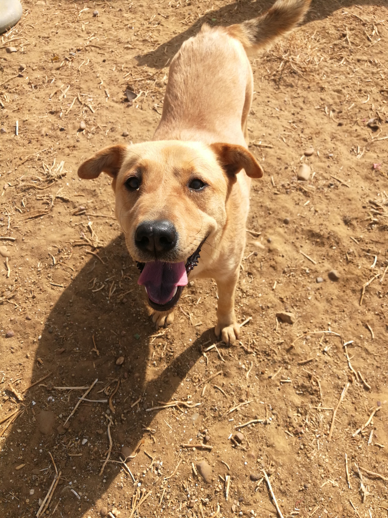 Die beiden Mädels lebten bisher in einem Industriegebiet in der Nähe von Sevilla. Von den Arbeitern gut versorgt mussten sie, wie man deutlich sehen kann, auf jeden Fall keinen Hunger leiden, aber das Leben zwischen den LKW und den schweren Maschinen war natürlich in höchstem Maße gefährlich, und auch nicht jeder der Männer war immer freundlich zu den anhänglichen Hunden. So beschlossen einige der besorgten Angestellten, die Arca Sevilla um Rat und Hilfe zu fragen, und so zogen die beiden Ulknudeln ins Tierheim und zaubern dort ganz vielen Leuten ein Lächeln ins Gesicht. Doch leider hat bisher noch niemand Michelle oder Maila ein richtiges Zuhause angeboten – wir hoffen, es klappt hier!
