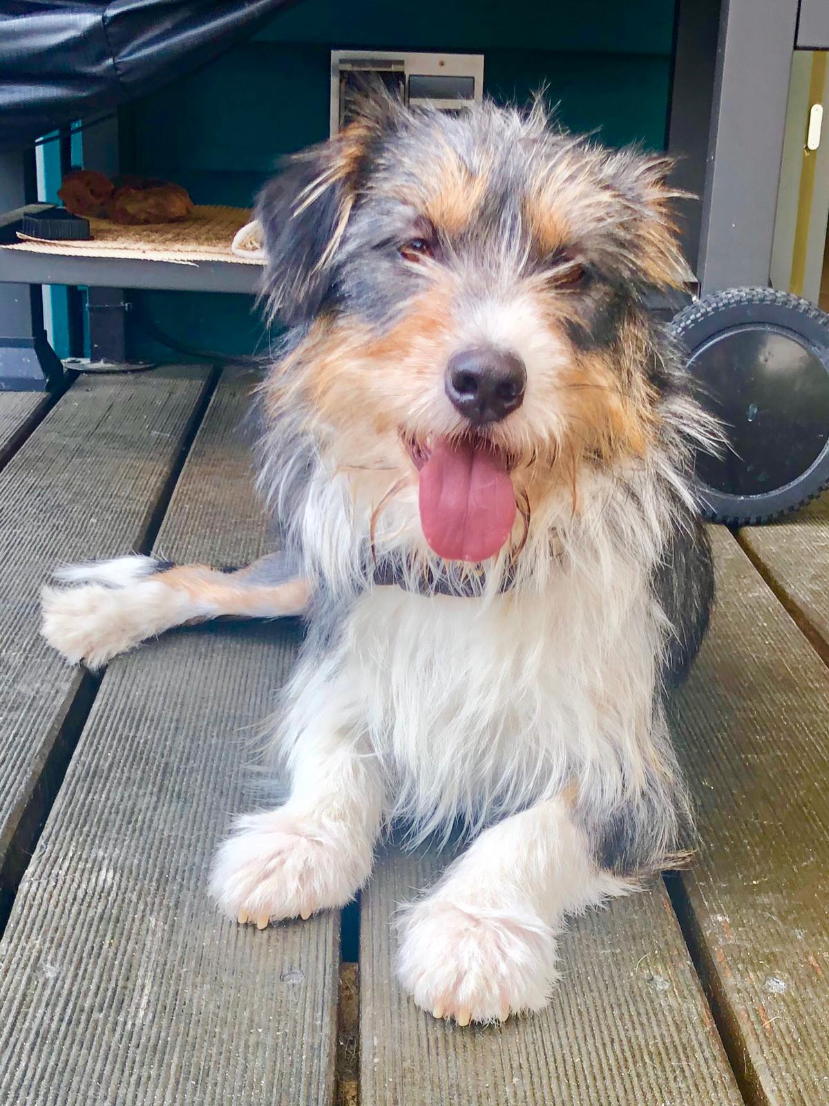 Hier kommt unser Max, ein wundervoller, noch keine zwei Jahre alter (Stand 04/2019) Terrier-Mischling. Max wurde auf dem Friedhof nahe der ArcoNatura in Linares ausgesetzt und er fiel den Tierschützern auf, weil er sich immer vom Katzenfutter bediente, das die Ehrenamtlichen für die Streuner auslegen. Leider war Max sehr schüchtern und trotz Leckerli und lieber Worte, viel Geduld und Erfahrung gelang es den Freiwilligen in Linares nicht, den eigentlich so freundlichen Rüden zu fangen. Es kam, was irgendwie kommen musste: Am 9. März 2019 rief eine Dame unsere Freunde an, um mitzuteilen, dass vor dem Friedhof ein Hund angefahren worden wäre, er könne sich nicht mehr bewegen. Sofort starteten die Tierschützer eine Rettungsaktion und Max wurde ohne Umwege in die Tierklinik gebracht. Das erste Röntgen zeigte gleich das Problem. Der flüchtende Hund hatte wohl einen starken Schlag gegen den Oberschenkel bekommen, der zum Glück nicht brach, aber der Knochen wurde aus seiner Pfanne geschlagen, Max hatte sich also die Hüfte ausgerenkt. Wenn so eine Verletzung frisch ist, stehen die Chancen gut, durch eine sofortige OP, bei der alles wieder an Ort und Stelle gebracht und fixiert wird, eine 100%ige Heilung zu erreichen, und Max wurde selbstverständlich direkt entsprechend versorgt. Leider fand sich in Linares keine Pflegefamilie, die ihn noch aufnehmen konnte – nach Ende der Jagdsaison sind alle Stellen, wie das Tierheim, überbelegt, doch Max konnte sich ausreichend in der Klinik erholen und zog dann in die ArcoNatura. Dort wird er jetzt noch verwöhnt, bevor er dann Anfang Mai nach Deutschland fahren darf, wo er in eine sehr erfahrene und liebevolle Pflegefamilie zieht, die sich um ihn kümmern wird, bis der lustige Tricolor-Charmeur seine eigenen Zweibeiner gefunden hat.Max ist ein inzwischen ein „Everbody’s Darling“ geworden. Er ist ein cleverer und sehr netter Zeitgenosse, der mit Hingabe schmust und jeden Tag mehr versteht, dass er den Menschen vertrauen darf. Seine Verletzung, innen wie außen, heilen zusehends, und wir sind uns sicher, dass dieser geniale Herzensbrecher schon jetzt nur noch nach vorne denkt – und bestimmt schon von einem eigenen Körbchen und einem quietschebunten Ball träumt.