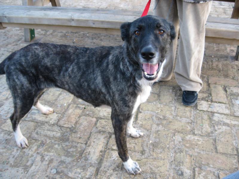 Megan wanderte allein und verstört durch einen Park. Sie machte einen orientierungslosen Eindruck und deswegen wurde sie von den Tierschützern direkt eingesammelt und ins Tierheim gebracht. Ihr Gesäuge wies darauf hin, dass sie wohl vor kurzem Welpen hatte und so suchten unsere spanischen Freunde die Umgebung nach möglichen Verstecken oder Hinweisen auf die Babys ab, doch leider fand man nichts. Vielleicht erging es ihr wie so vielen Hündinnen, die nach dem Werfen ausgesetzt werden. Ein Welpe wird behalten, der Rest „entsorgt“ – kein Tier ist so grausam wie der Mensch. Nun, die hübsche Mischlingshündin mit dem wundervoll gestromten Fell und den weißen Söckchen hat sich von all diesen Erfahrungen sehr gut erholt und taut in den Händen der erfahrenen Tierschützer richtig auf. Schmusen ist ihr allergrößtes Hobby, sie sucht bei jeder Gelegenheit die Nähe von Menschen, aber auch gegen eine Runde Fußball oder einen schönen Spaziergang hat die ausgeglichene, ruhige Dame absolut nichts einzuwenden. Megan ist ein absolut problemloses Mädchen, das sich mit allem und jedem gut versteht. Sie ist sehr menschenbezogen und mag auch Kinder sehr gerne, sie ist kontaktfreudig mit Artgenossen und kommt mit Katzen klar. Sie ist nicht besonders überschwänglich und kann so auch ohne Einschränkungen von Familien mit kleineren Kindern adoptiert werden. Megan ist mit ihren karamellfarbenen Augen ein richtiges Engelchen, und sie wünscht sich zu Weihnachten nichts mehr als ein Zuhause, das sie mit ihrer Liebe und Anhänglichkeit füllen darf.