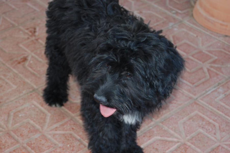 Wenn man eine Tierklinik hat, muss man wohl mit Überraschungen rechnen, die morgens vor der Türe warten. Dieses Mal war es eine sehr lockige, überwiegend schwarze mit 12 Beinen und einem Kuschelfaktor von 10! Mickel, Donna und Angelo wurden ausgesetzt, immerhin schon mal nicht auf den Straßen von Linares, wo sie keine Chance gehabt hätten allein zu überleben, sondern direkt vor dem Eingang einer Tierarztpraxis. Das Team hat, nachdem die Kleinen durchgecheckt und für quietschfidel und gesund befunden waren, sofort die Tierschützer der Arconatura informiert, die die drei Knutschkugeln in ihre Obhut nahmen. Jetzt wohnen unsere dauergewellten Zuckerstückchen bei einer Pflegefamilie und entwickeln sich dort ganz hervorragend. Wie alle Welpen nehmen sie mit großem Enthusiasmus ihre Umwelt in Beschlag, erfreuen sich am schönen Abenteuerspielplatz Leben und verbringen noch viel Zeit mit Wachsen, Fressen und Schlafen. Ihre Haarpracht lässt die Vermutung zu, dass Wasserhundblut in ihren Adern fließt, die Ohren und die Nasen könnten Labradoreinschlag andeuten. Was auch immer in den Energiebündeln steckt, sie werden sicher keine Giganten, bleiben aber auch keine Chihuahuas, zwischen Pudel- und Schäferhundgröße ist aber alles möglich — wir nennen so etwas gerne „Überraschungsei“ und weisen freundlich darauf hin, dass der Hund aufhört zu wachsen, wenn er damit fertig ist.Mickel, sein Brüderchen Angelo und die kleine Donna sind jetzt schon ganz begeistert vom Leben in der Familie, sie mögen Artgenossen und Kinder, jetzt fehlt nur noch ein ganz eigenes Zuhause für jeden der drei Herzensbrecher. Wer begeistert sich für eins der schwarzen Sofakissen und sorgt dafür, dass sie im Frühling vielleicht schon im eigenen Garten die ersten Schmetterlinge jagen können?