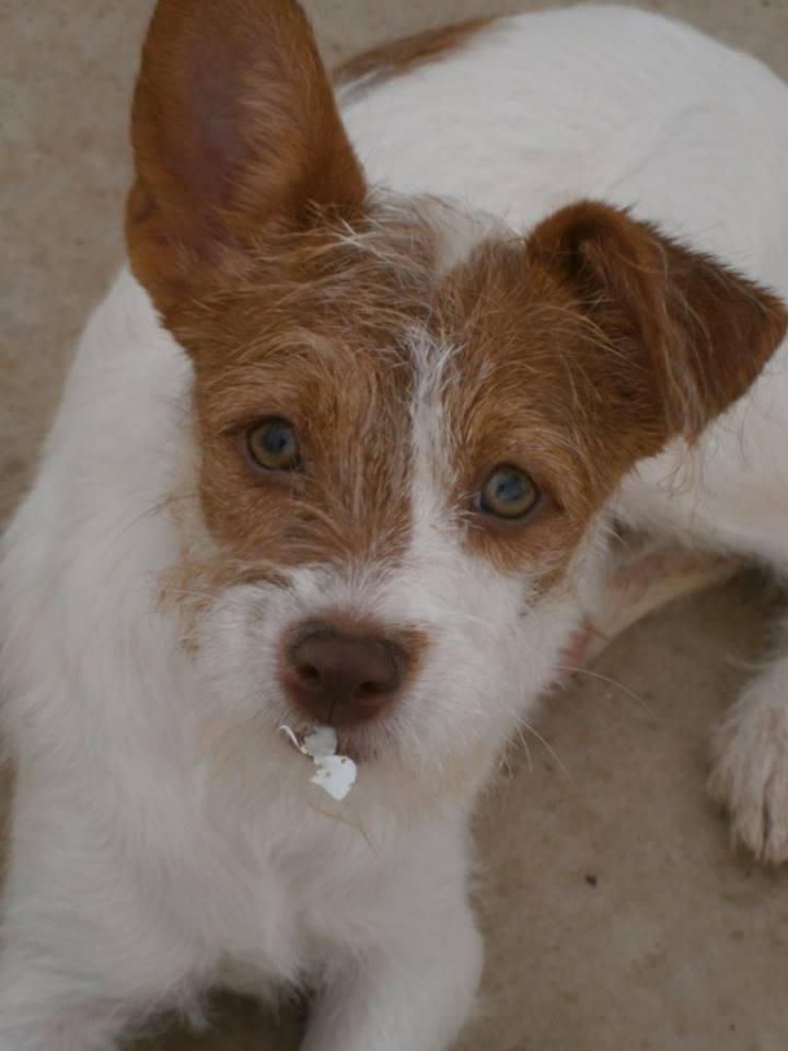 Unsere kleine Milka wurde auf der Straße entdeckt. Soweit nichts Besonderes, mögen Sie jetzt vielleicht denken, doch die kleine Vagabundin hatte sich ausgerechnet einen der ärmsten und gefährlichsten Stadtteile von Linares ausgesucht. Die Gegend ist berüchtigt für ihr Drogenproblem und die daraus resultierende Kriminalität, die auch Hundekämpfe und andere Absurditäten einschließt. Kurz gesagt: Milka hätte sich kaum einen gefährlicheren Ort aussuchen können, um bei ihren täglichen Streifzügen nach Nahrung Ausschau zu halten. Ausnahmsweise bewiesen die Polizeibeamten, die in der Gegend auf Streife waren, Herz und Mitgefühl und nahmen sich der schlammverkrusteten, kleinen Hündin an, brachten sie zu Inma und Montse in die Tierklinik und retteten so der geschwächten Maus das Leben.Milka durfte nach einem ausgiebigen Bad, einem kurzen Check, Entwurmung und Impfung direkt in die ArcoNatura umziehen. Dort gefällt es der kleinen Weltenbummlerin ausgesprochen gut- regelmäßige Mahlzeiten, freundliche Mitbewohner und ein trockenes Plätzchen haben eben doch etwas für sich. Dass unsere kleine Grinsebacke den Schalk im Nacken sitzen hat, kann sie kaum verleugnen. Die Ohren sind sich völlig uneins darüber, ob sie nun Steh- oder Schlappohren sein möchten und haben immerhin übergangsweise einen Kompromiss gefunden: eines steht, eines schlappt. Zudem blitzen die Augen dieser frechen jungen Dame so keck in die Welt, dass man allein durch ihren Blick zum Lachen animiert wird. Außerdem trägt die Dame von Welt Bart- und zwar einen ganz schön struppigen, was die ganze Sache auch nicht gerade ernster aussehen lässt. Kurzum, wir haben es hier mit einem echten Unikum zu tun! Zudem ist unsere ca. 6 Monate alte (Stand 11/ 2016) Terrier- Mix- Prinzessin eine echte Meisterin im Niederkuscheln sämtlicher Zweibeiner- ganz klar also, dass ihr alle Beteiligten bereits zu Füßen liegen!Eine vorwitzige Junghündin möchte die Welt bereisen und die Endstation heißt: Ihr Zuhause! Also, ran an die Tasten und geschwind eine Nachricht an Milkas Vermittlerin geschrieben, damit die süße Praline bald Ihr Herz und Haus im Sturm erobern kann…