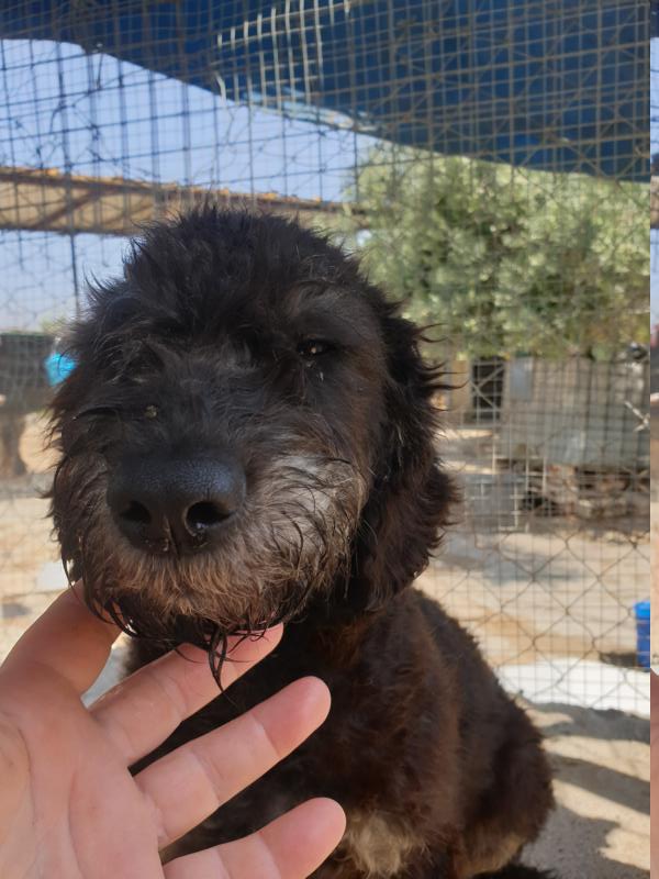 In der Nähe von Linares gibt es einen Olivenhain. Gepflegte Bäume reihen sich aneinander, es gibt ein Bewässerungssystem und jeden Tag kommen Arbeiter vorbei, die die Reste ihres Mittagessens entsorgen. Es wundert also kaum, dass sich dort ein Rudel streunender Hunde angesiedelt hat – man ist abseits der Stadt, hat fließendes Wasser und kann Futter abstauben … Natürlich explodiert unter solchen Bedingungen ein Rudel sehr schnell, Inzucht wird spätestens in der dritten Generation zum echten Problem und die Welpen sind leichte Opfer für Infektionskrankheiten wie Staupe und Parvovirose. Also informierten die Landarbeiter die Tierschützer der ArcoNatura, und nun beginnt man, die zum Teil sehr welterfahrenen und cleveren Vierbeiner einzufangen und in die Obhut des Tierheims zu bringen. Die Rettung der Welpen und Jungtiere ist der einfachere Teil, und so verwundert es nicht, dass eines der ersten Tiere, das wir in die Vermittlung aufnehmen können, die erst 5 Monate alte Molly ist.Molly ist ein lustiger Wasserhund-Mix, der sich im Tierheim ganz schnell eingewöhnt hat. Sie ist noch ruhig und beobachtet noch mit Interesse, aber Molly zeigt sich dabei anhänglich, interessiert und auch jeden Tag mit mehr Spieltrieb. Wer aufgewachsen ist wie unsere kleine Prinzessin, hat natürlich mit anderen Hunden kein Problem, Molly kennt die „Sprache“ ihrer Artgenossen und weiß genau, wann sie sich freundschaftlich hüpfend auf jemanden stürzen kann und wann eine vorsichtige Annäherung gefragt ist – und auch, wann man besser Abstand hält. Mit Menschen fehlen dem kleinen Lockenkopf aber noch Erfahrungen, wobei das eher positiv zu bewerten ist, denn Molly ist den Zweibeinern gegenüber sehr offen, hat schon gelernt, dass diese oft Kekse in den Taschen haben, hört interessiert zu, wenn gesprochen wird und findet diese Wesen insgesamt einfach spannend. Man merkt, dass sie nicht – wie viele unserer Straßenhunde – mit Wasser verscheucht, getreten, geschlagen oder angeschrien wurde, ein großes Glück für das kleine Mädchen. Ansonsten ist Molly schlicht ein bezaubernder Backfisch, der ein Zuhause auf Lebenszeit sucht. Wenn Sie sich auf das Fellbündel bewerben wollen, bedenken Sie aber bitte, dass Wasserhunde und ihre Mischlinge Hütehunde sind. Wir können nicht sagen, wie sehr diese Gene bei Molly zum Tragen kommen, aber Sie sollten durchaus einen Plan haben, wie Sie ein helles Köpfchen an langweiligen Regentagen beschäftigen können, bevor es sich selbst Beschäftigung sucht. Molly möchte jemandes beste Freundin werden – sind Sie bereit, diese Stelle zu vergeben?