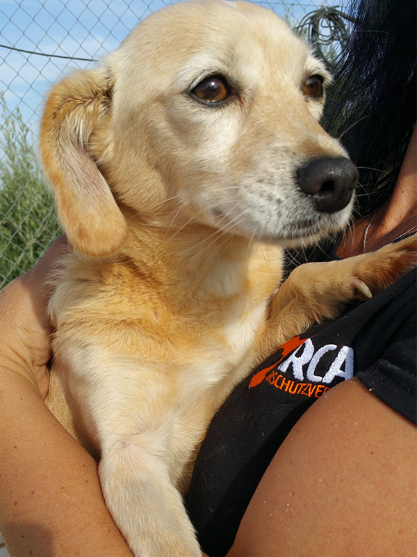 Ein Oscar-reifes Lächeln, große dunkle Knopfaugen, die fröhlich und neugierig in die Welt strahlen, ein karamellfarbenes Fell mit lustigen Sahnetupfern – das alles ist Nana. Dass die zweieinhalb Jahre alte (Stand 08/2016) Mischlingsdame so gesund und munter in die Kamera grinsen kann, hat sie einer tierlieben Familie zu verdanken, die mit ihren Hunden vor den Toren von Linares spazieren war. Dort trafen sie auf das vollkommen entkräftete Mädchen, das sich gerade noch so vor die Füße der netten Menschen schleppen konnte. Dehydriert, abgemagert, schmutzig und parasitenübersät hoffte Nana auf Hilfe, und bekam sie.Ihre Retter brachten die zitternde Hundedame in die Obhut der Tierklinik in Linares, wo sie von unserer Freundin Montse und deren rechter Hand Inma in liebevolle Pflege genommen wurde. Nana musste stationär aufgenommen werden, damit ihr geholfen werden konnte. Antibiotika, Infusionen, gutes Futter und enorm viel Liebe ließen die kleine Praline aber sehr bald ihre Lebensgeister wiederfinden. Schon nach wenigen Tagen war die anhängliche, ruhige und ausgeglichene Hündin zur Hilfskrankenschwester aufgestiegen, die mit ihrer freundlichen Art sogar vierbeinigen Angsthäschen den Aufenthalt in der Klinik erleichtern konnte.Nach ihrer vollständigen Genesung ist Nana nun in die ArcoNatura umgesiedelt, wo sie sich auch bestens mit ihren Mitbewohnern versteht. Allerdings sehnt sie sich nach Nähe, nach Streicheleinheiten und nach einem Ort, an dem die Nächte nicht lang und einsam sind. Wir suchen für Nana ein schönes Zuhause, wo sie endlich wissen darf: Ich bin zu Hause und muss nie wieder fort!