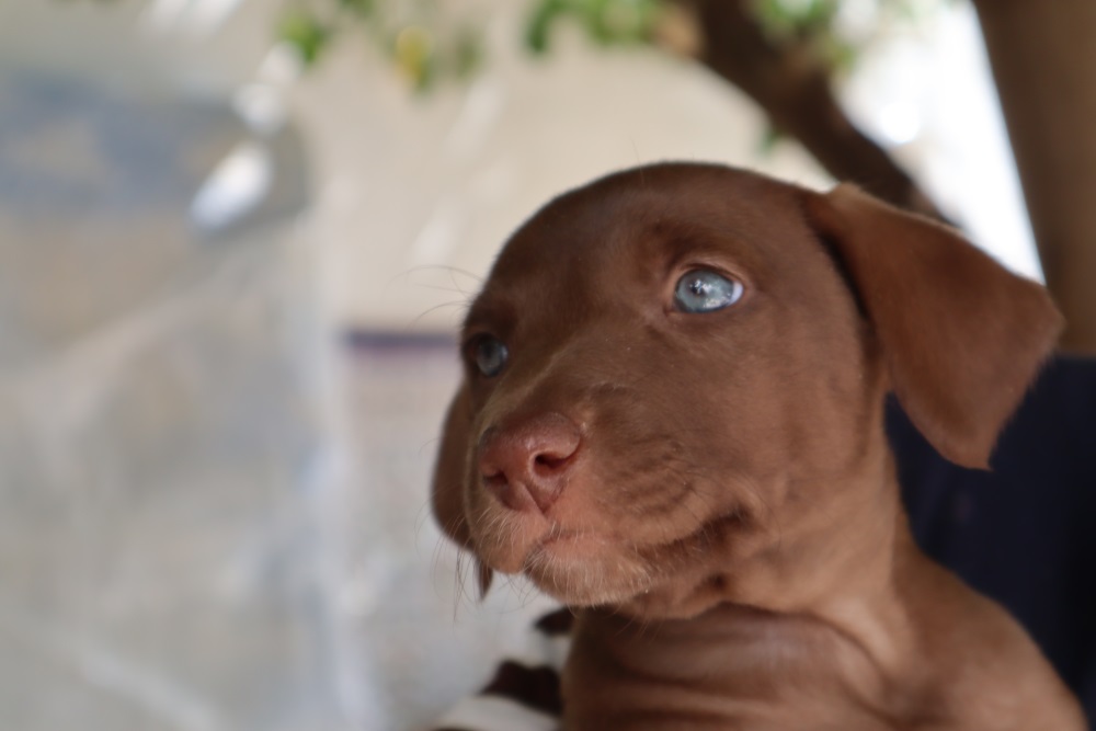 Kennen Sie das auch? Manchmal sieht man Kinder anderer Leute und denkt: „Wow, ganz der Papa!“ – also im Falle unserer fünf Schokodrops-Welpen aus Linares kennen wir den Papa zwar nicht, aber es muss wohl trotzdem so sein, dass die Fellkugel-Brigade ihre Gene zu 99% aus den Erbanteilen des Vaters gezogen hat. Schauen wir auf die zärtliche Mama, die ihre Rasselbande jedem stolz präsentiert, sehen wir eine zarte Podenca, kniehoch, schlank und mit einer rassetypischen leuchtend roten Nase. Hope – so heißt das hübsche Wesen – wurde im Stadtpark entdeckt, wo sie ihr fröhliches Quintett groß zog… und eine leichte Beute für die Hundefänger gewesen wäre. Also sammelten die ohnehin gerade von einer Babyflut überraschten Tierschützer der ArcoNatura auch diese Familie ein und gaben ihr ein (hoffentlich) vorübergehendes Zuhause im Tierheim.