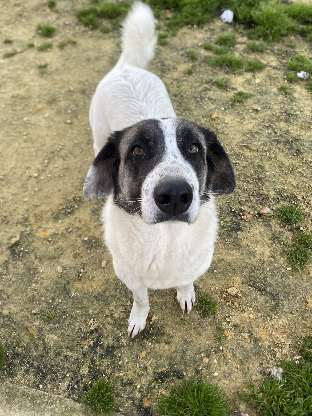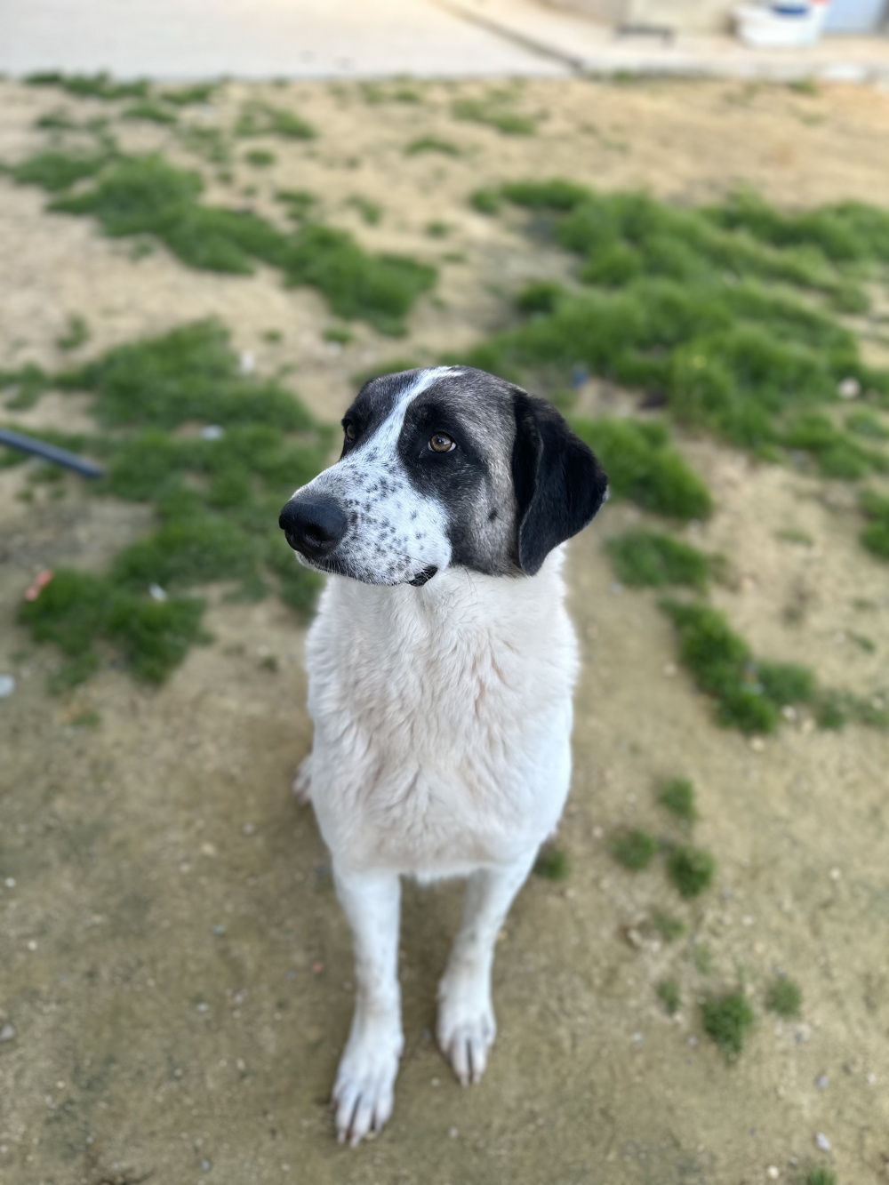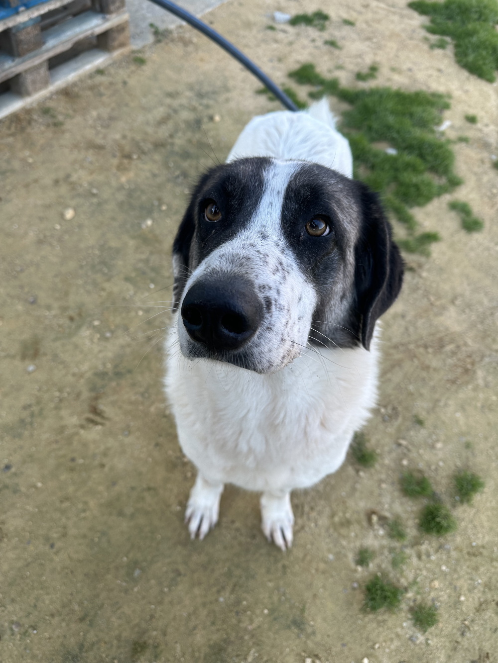 Unsere bildhübsche Mastin-Mix-Dame ist 3 Jahre alt (Stand 05/2025). Gemeinsam mit einigen Leidensgenossen wurde sie aus schlechter Haltung in die Obhut der Tierschützer von „El Buen Amigo“ gegeben. Und Nena ist in dem kleinen familiären Refugio ganz schnell aufgetaut und zu einer echten Herzensbrecherin avanciert. Nena ist sehr verschmust und anhänglich, sie zeigt sich weltoffen und neugierig, freut sich, vierbeinige und zweibeinige Freunde zu finden – und ganz Herdenschutzhund ist sie auch wirklich clever und selbständig. Wenn unserer Prinzessin langweilig ist, geht sie schon einmal prüfend am Zaun entlang, und zeigt auf beeindruckende Weise, dass auch unsere Giganten durchaus eine Karriere als Leichtathleten anstreben können. Wenn Nena eine Stelle im Zaun findet, die ihr niedrig genug erscheint, dann hüpft sie schon mal drüber und macht einen kleinen Ausflug in die Nachbarschaft … Wenn Sie also unserem Fotomodell ein Zuhause schenken möchten, wäre ein gut und vor allem ausreichend hoch eingezäunter Zaun eine Voraussetzung. Aber das ist ja nun auch für die meisten Hunde so. Neben einem Nena-geeigneten Garten sollten Sie aber auch für zentnerschwere Kuschelattacken gerüstet sein, Sie sollten gern draußen sein, und Sie sollten sich von der Vorstellung verabschieden, dass Kleidung ohne Hundehaare in Ihrem Haushalt existiert (wir empfehlen Ihnen gern die besten auf dem Markt zu findenden Fusselroller).
