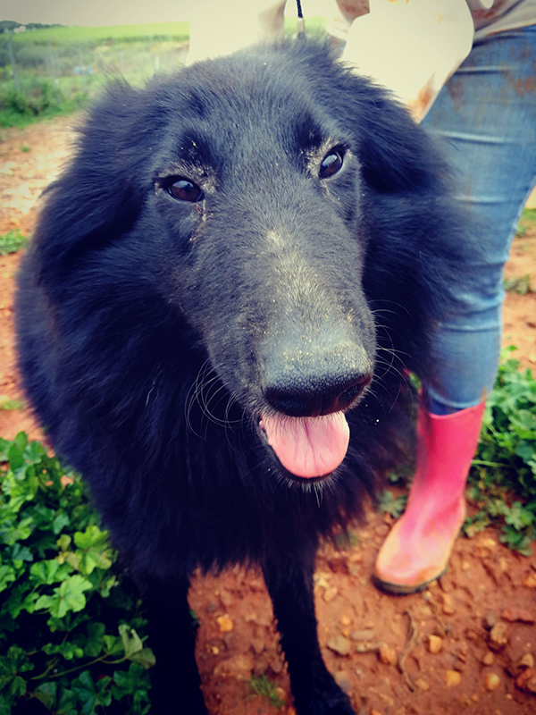 Nero – das heißt "schwarz", und es ist unschwer zu erkennen, warum unser flauschiger, in der Sonne glänzender Neuzugang diesen Namen trägt. Nero ist ein Groenendael (vielleicht nicht ganz reinrassig, aber doch sicher zu allergrößten Teilen) – und  für all unsere Leser, die sich jetzt fragen, was denn ein Groenendael ist: man bezeichnet so eine schwarze und langhaarige Unterart des belgischen Schäferhunds, der in Deutschland aber viel häufiger durch den Malinois vertreten ist, welcher in vielen Bereichen als Arbeitshund den Deutschen Schäferhund ergänzt oder sogar ersetzt.Nero wurde wohl beim Umzug seiner Familie zurückgelassen wie ein nicht mehr benötigtes Möbelstück. Eine Nachbarin entdeckte den verwirrten, bildhübschen, erst eineinhalb Jahre alten (Stand 03/2018) Rüden in einem verlassenen Haus, wo er auf dem Grundstück nach etwas Essbarem suchte. Da Nero gepflegt war und weit und breit kein Mensch in Sicht, nahm die Tierfreundin den zärtlichen Schäferhund erst einmal zu sich und stellte sicher, dass er nirgendwo vermisst wird und auch keine Kennzeichnung trägt. Nero ist erst wenige Tage in der Obhut der Dolmen Animal, aber in der Tierpension zeigt er sich als enorm umgänglich, liebevoll und souverän. Er hat keinerlei Probleme mit den anderen Hunden, vertritt ruhig seine Interessen, ohne dominant zu wirken und ohne sich wahllos zu unterwerfen. Majestätisch und für sein Alter schon sehr ausgeglichen bewegt er sich im Rudel. Im Umgang mit Menschen ist Nero hingegen einfach nur ein Kuschelbär, der jede Zuneigung genießt und gar nicht genug davon bekommen kann, zu hören, dass er ein toller Hund ist.