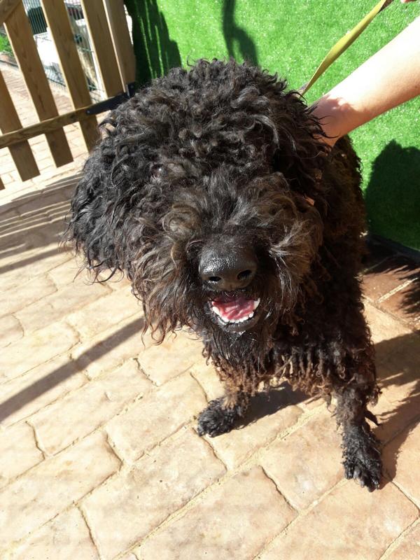 Wenn unsere spanischen Freunde den schweren Gang in die Perrera wagen, dann gibt es im Wesentlichen 2 Seiten der Medaille: zum Einen bedeutet dies, dass im Tierheim ein paar Plätze frei geworden sind, weil wieder einige Fellnasen die lange Reise nach Deutschland in ihr neues, glückliches Leben antreten durften. Andererseits heißt es, dass eben in der Tötungsstation viele arme Seelen auf den sicheren Tod warten, nur zu retten durch die Tierschützer, die die Hunde aufnehmen. Ich habe allergrößten Respekt vor denen, die sich jeden Monat wieder aufraffen, durch die langen, dunklen Flure gehen, die Angst und den Tod vieler kleiner und großer Vierbeiner vor Augen, und die die schwerste aller Entscheidungen treffen müssen- welche der verzweifelten Hunde das Höllenloch verlassen dürfen, um eine Chance auf ein neues Leben zu bekommen…Im Dezember 2016 war es wieder soweit: Unsere Freunde aus Sevilla konnten einige der armen Fellnasen retten und in der Arca unterbringen. Daher werden wir Ihnen in den nächsten Tagen mehrere neue Gesichter präsentieren, mit langen oder kurzen Haaren, mit und ohne Bart, großen und kleinen Ohren und jedes für sich ein Unikat.Auch Obama ist einer der Glücklichen, die den engen Betonzwinger für immer hinter sich lassen können. Der ca. 1 Jahr alte (Stand 12/ 2016) Wasserhund sieht momentan zwar noch etwas mitgenommen und verfilzt aus, wird aber sicher in den nächsten Tagen seinen längst überfälligen Termin beim Friseur wahrnehmen und wie aus dem Ei gepellt zurückkehren. Unser lieber und anhänglicher Lockenkopf beginnt bereits, das Leben inmitten seiner Artgenossen und mit einigermaßen viel Platz zu genießen. In Spanien traditionell als Arbeitshunde eingesetzt, erfreuen sich die tollen Begleiter mit der Bob- Marley- Frisur seit einiger Zeit vor allem bei uns als treue Familienhunde immer größerer Beliebtheit- kein Wunder, denn Wasserhunde sind, artgerechte Haltung und Erziehung vorausgesetzt, geniale Freunde für Groß und Klein. Sollten Sie also dieser Lockenpracht nicht widerstehen können und ihr Herz bereits an diesen ungeschliffenen Diamanten verloren haben, zögern Sie nicht. Obamas zuständige Vermittlerin informiert Sie gerne darüber, wann und wie dieser einzigartige Schatz sich ganz bald schon auf Ihrer Couch breit machen kann!