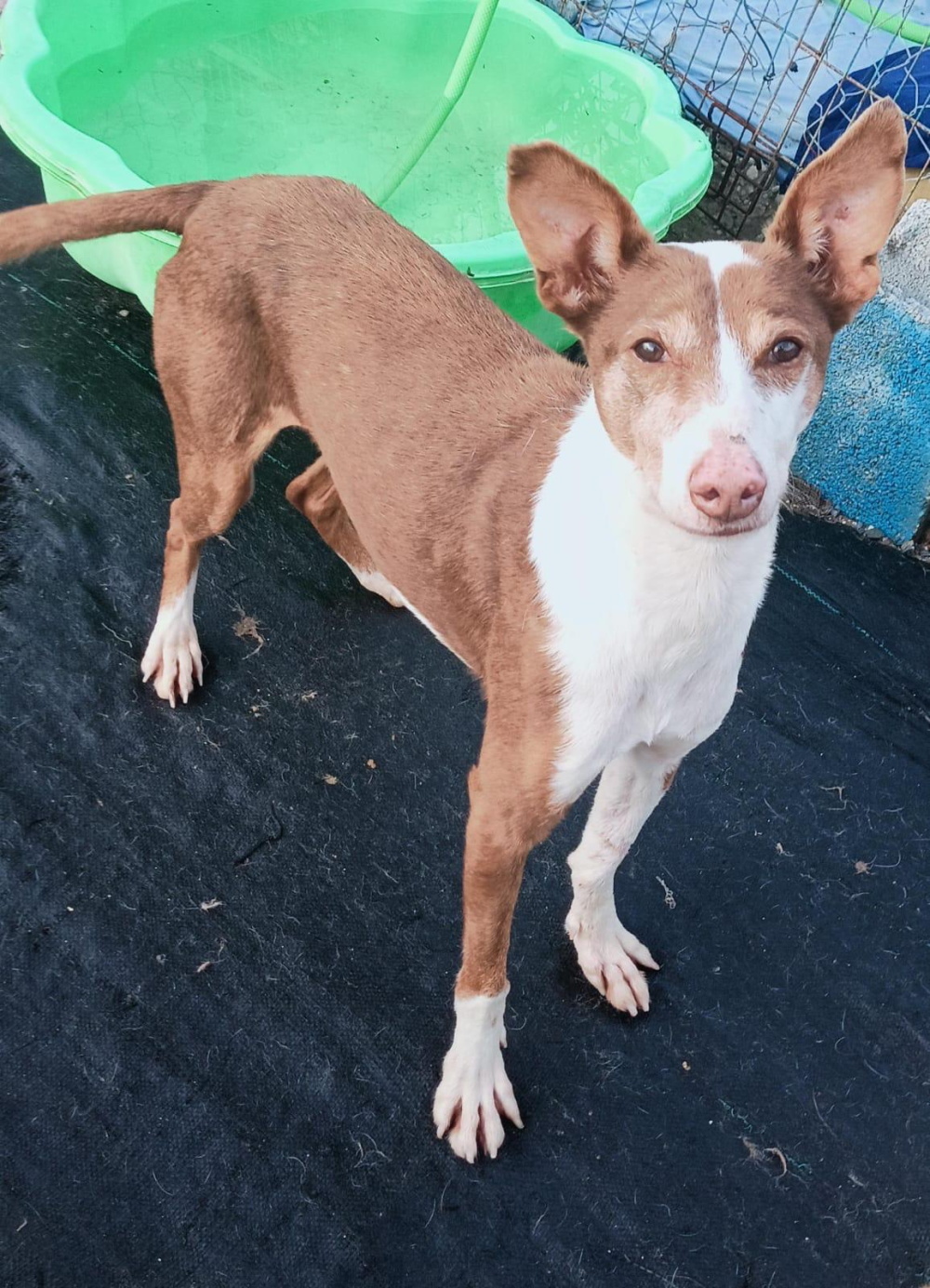 Ein ganz besonders schönes und außergewöhnlich gefärbtes Exemplar eines Podencos ist auf der Suche nach einem neuen Zuhause.